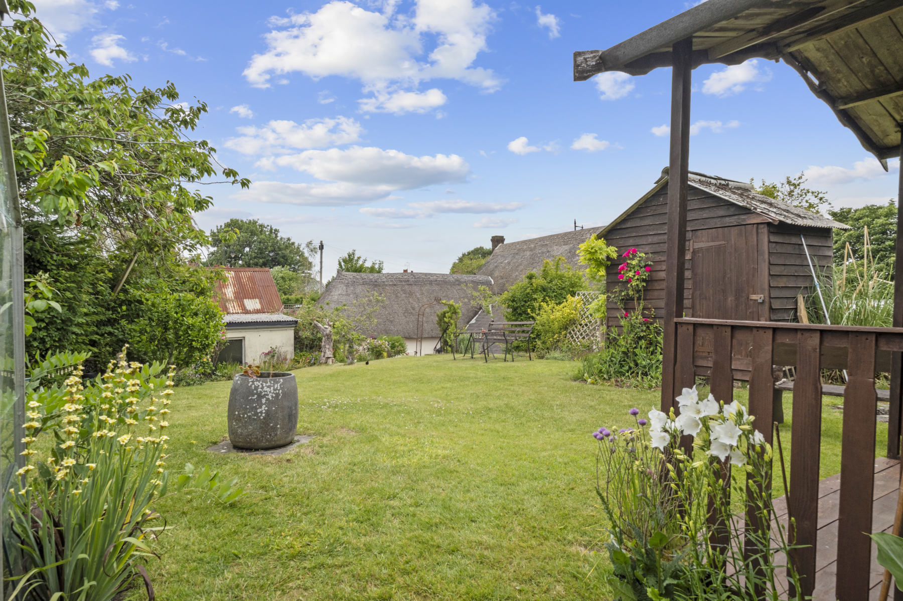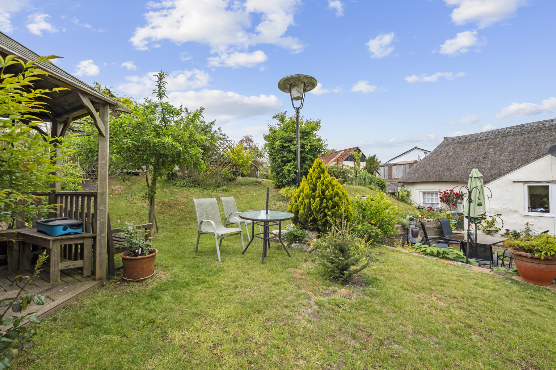 The property sits on a GENEROUS PLOT with a mature and private rear garden, thoughtfully landscaped with both lawn and patio areasideal for alfresco dining, entertaining, or simply enjoying the peaceful setting.