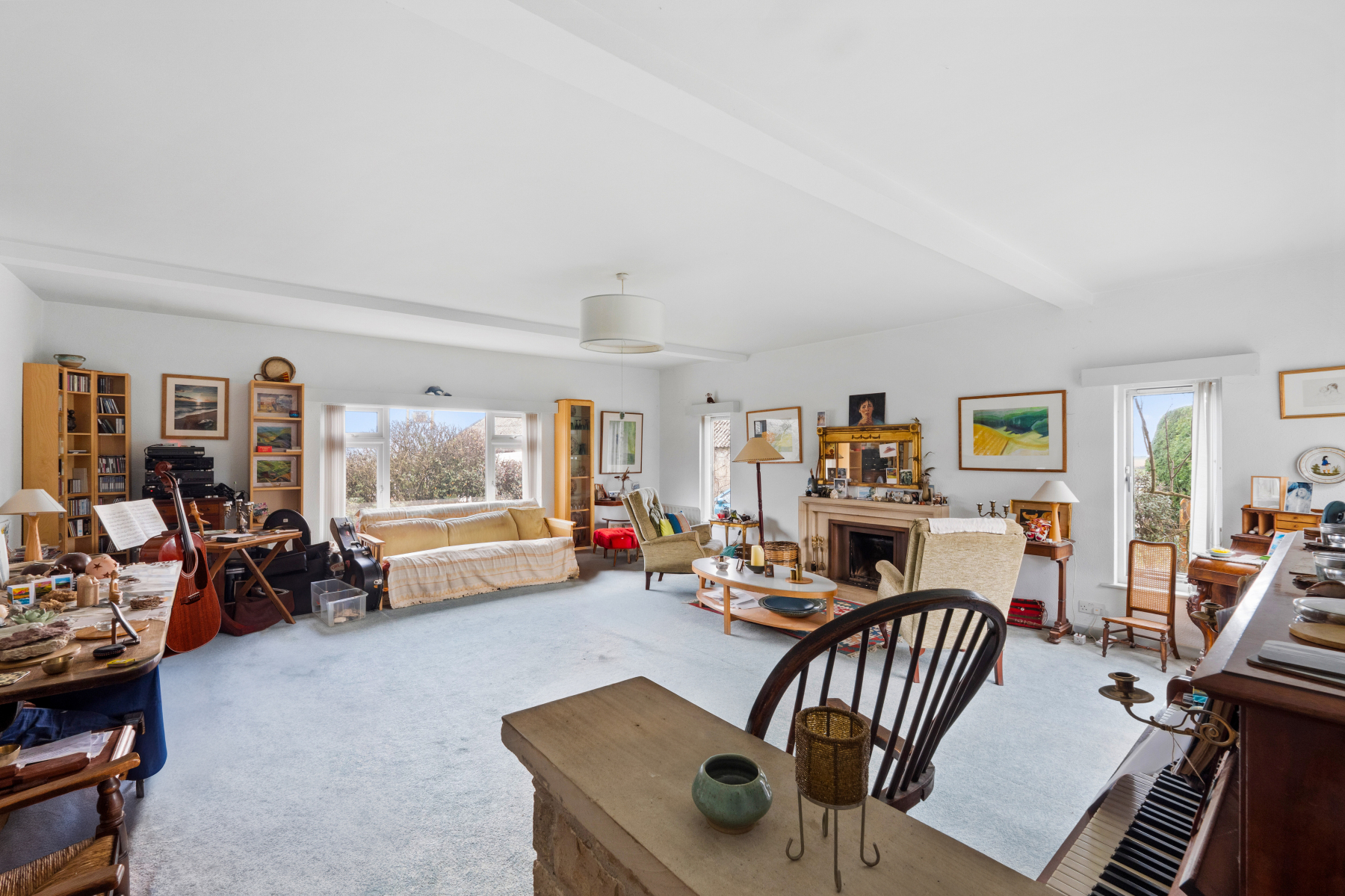 The SITTING ROOM is very spacious and bright, featuring an open fireplace and triple-aspect windows that allow natural light to fill the room, making it ideal for both everyday living and social gatherings. The SECOND SITTING ROOM overlooks the rear garden and could serve as a snug, reading room or additional lounge.