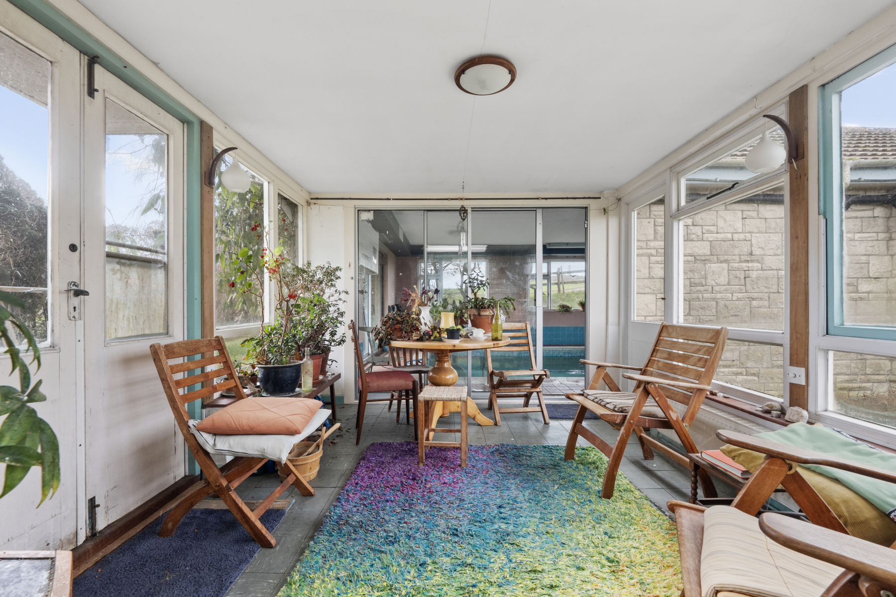 Through the SUNROOM, you enter the INDOOR SWIMMING POOL COMPLEX designed for year-round enjoyment and relaxation. The pool benefits from a solar connection to assist with heating during the warmer months, a built-in pool cleaner integrated into the pump system, a wall-mounted dehumidifier and a wall mounted extractor fan to ensure comfort and practicality.