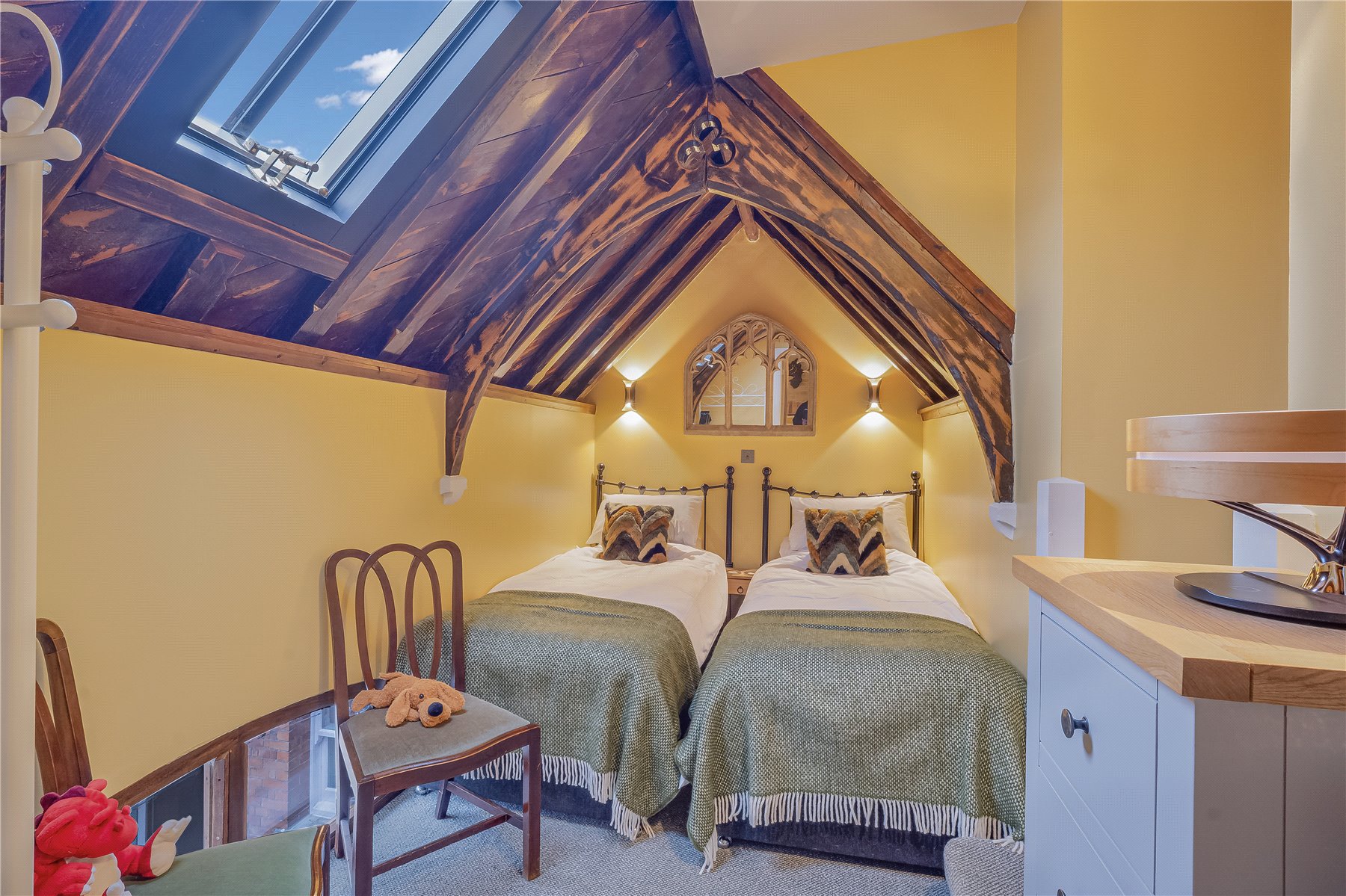 BEDROOM TWO offers flexibility for guests and features an exposed timber ceiling and a fitted CR8 Conservation Rooflight that adds to its individual character.