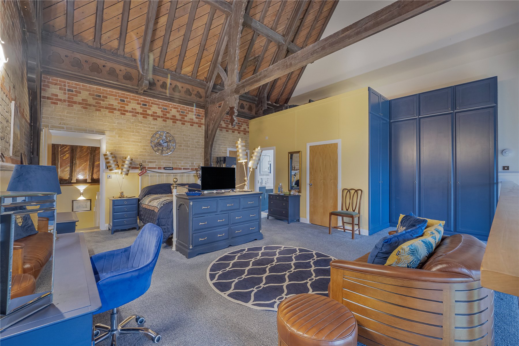 Stairs also rise from the entrance hall to the landing, where doors give access to the principal bedroom and second bedroom. The PRINCIPAL BEDROOM positioned on the mezzanine level, enjoys countryside views from the two mullion windows and benefits from the vaulted ceiling and exposed brickwork. This room provides a peaceful retreat, with built in wardrobes, a useful storage cupboard and its own ENSUITE bathroom fitted with a panelled bath and shower attachment, wash-hand basin and WC.
