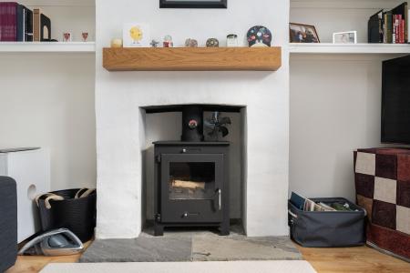 This delightful property starts in the entrance hallway which leads to the well-proportioned sitting room with feature fireplace fitted with log burner and large windows creating a lovely bright entertaining space. Opposite the hallway is the thoughtfully arranged kitchen, featuring plenty of base and eye-level units, wooden countertops, an integrated induction hob/cooker and room for a standalone dishwasher. A dedicated space for a dining table and chairs makes this the real 'heart of the home'. There is a useful understairs laundry cupboard with plumbing for a washing machine and tumble drier as well as additional space for storage. Steps lead down to the family bathroom which has been fitted with a stylish white suite including a bath and overhead shower, tiled for a clean and practical feel. There is also convenient rear access out to the garden.