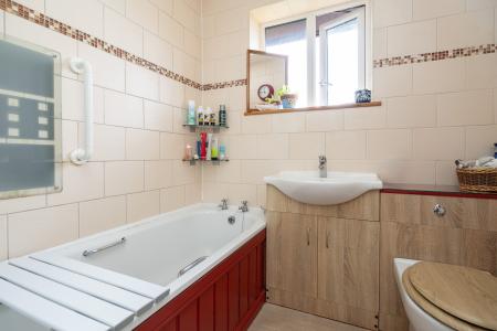 Upstairs, the spacious landing leads to two well-proportioned bedrooms, both offering comfortable accommodation and flexibility for various uses - whether as a main bedroom, guest room, or home office. The bathroom has been fitted with a bath, overhead shower and vanity unit for additional storage. The landing also provides access to the loft which provides fantastic additional storage.