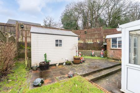 Outside, the garden is thoughtfully laid out with a patio area for seating and outdoor dining, a small section of lawn, and a large shed-perfect for storing bicycles, tools and garden furniture. The outdoor space is easy to maintain and also offers driveway parking for two cars. To the side is a 24ft work shop/storage cupboard.