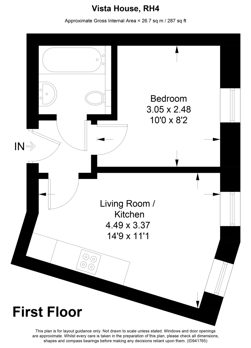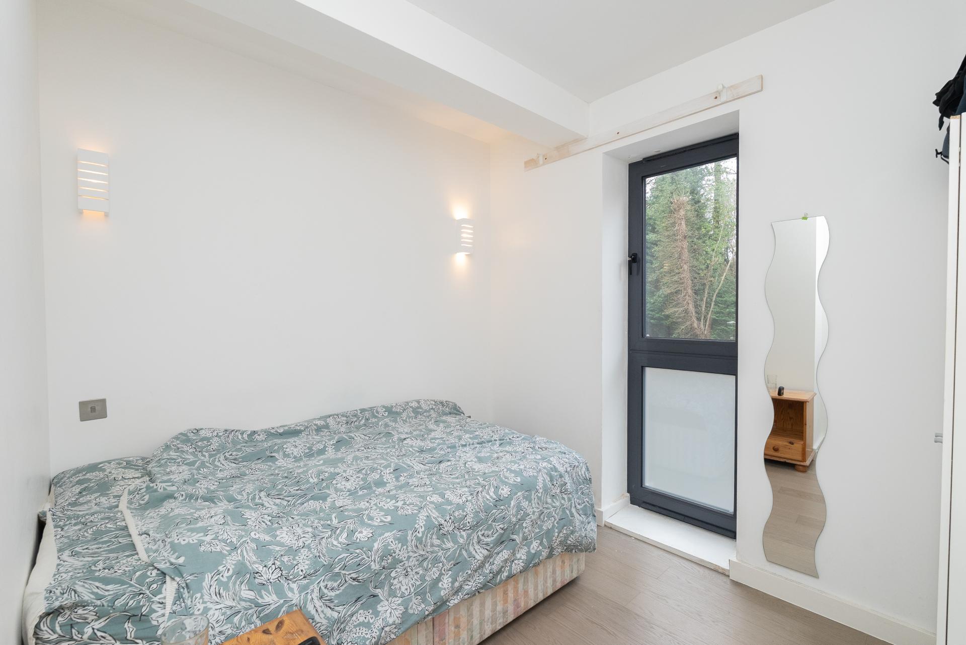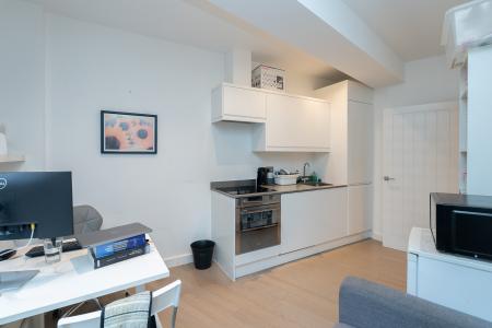 Access is via a communal entrance. The front door leads into an internal hall providing access to all accommodation. The open plan kitchen/living room has been fitted with a modern range of gloss base and eye level units, complemented by worktops and a selection of integrated appliances and two floor to ceiling windows provide an abundance of natural light. While the current occupant uses a single bed, the 10ft x 8'2ft bedroom has space for a small double and freestanding wardrobe. The bathroom is a standout feature of the apartment, boasting a contemporary design and stylish finishes. The bathroom is fully equipped with a shower over the bath, modern fixtures, and elegant tiling, making it a luxurious space to relax and unwind. Overall, this small one bedroom apartment is the perfect blend of style and functionality, making it an ideal home for anyone seeking a modern living space with all the necessary amenities, including a secure cycle lock up, for storing your bicycle.