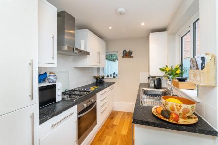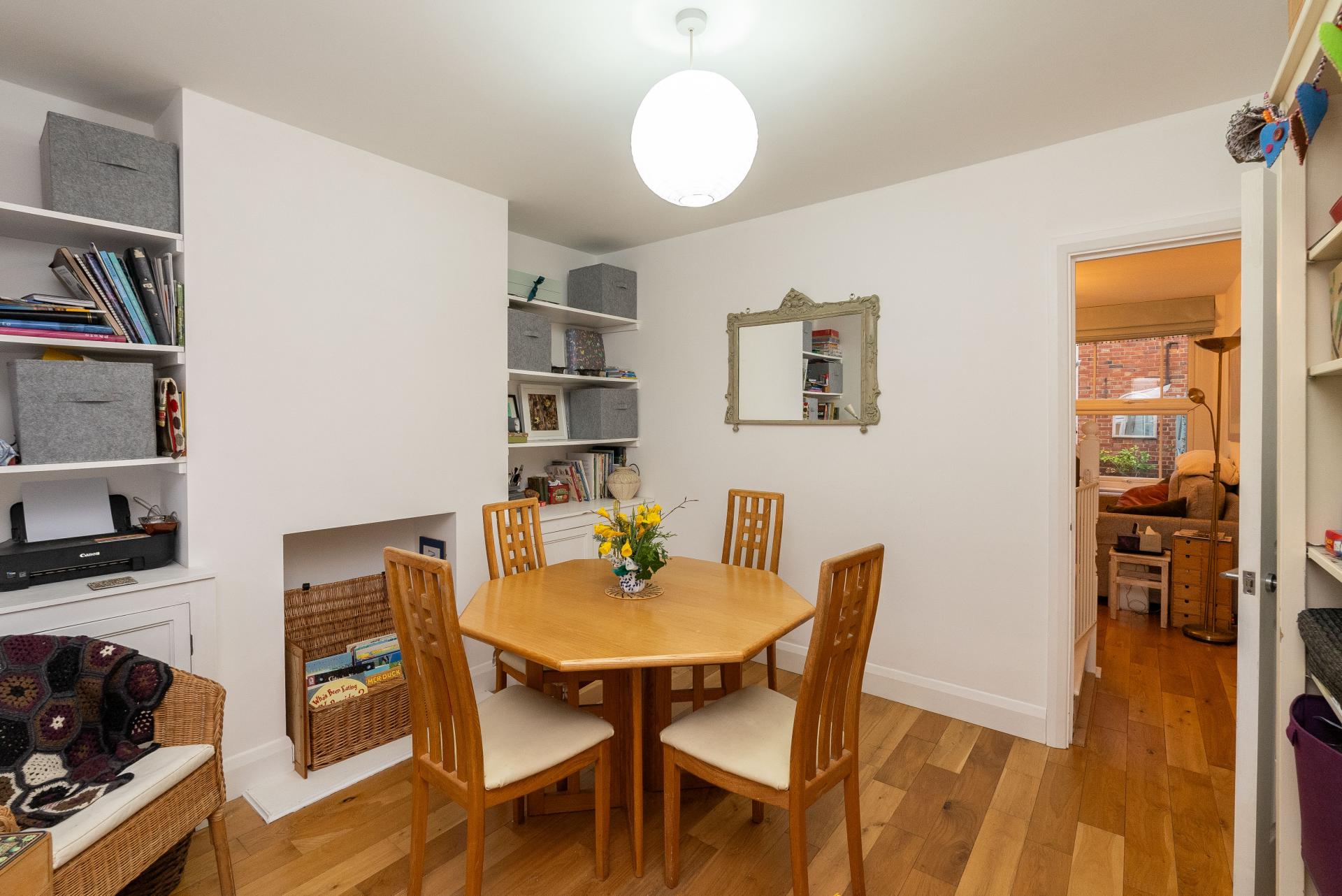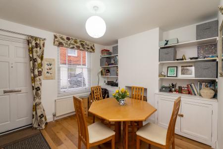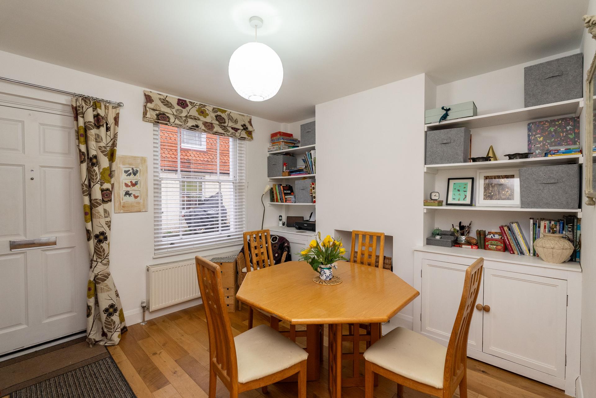The accommodation begins in a cosy front aspect dining room with plenty of space for a table and chairs with fitted storage cupboards to maximise space. Next is the living room which is an intimate yet generous space centred around a feature fireplace and seamlessly connects to the modern kitchen which has been fitted with an array of floor to ceiling units complemented by ample worktop space, built in appliances and also benefitting from a door out to the courtyard garden.