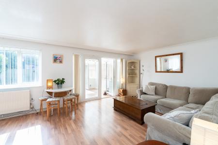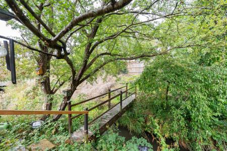To the front of the property there is a small area of lawn and a driveway, offering parking in front of the single garage. There is also a (privately owned) section of land to the front of the property where you can plant or grass to allow you to enjoy the Pippbrook Stream. The enclosed rear garden has been designed with low maintenance in mind, mainly laid to patio, providing an ideal space for outdoor entertaining and relaxation, all bordered by mature hedges and fencing for added privacy.