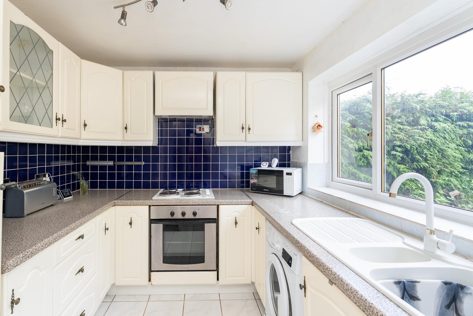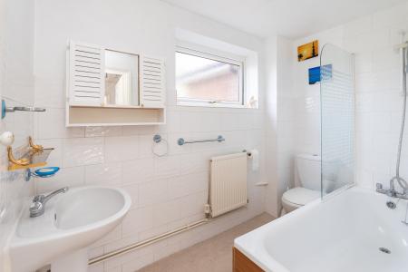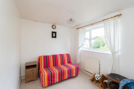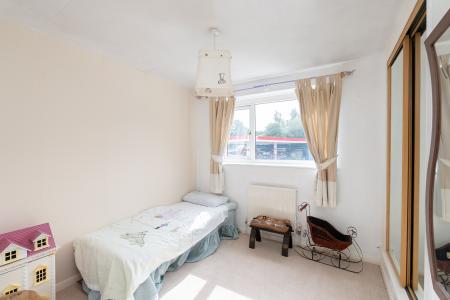 Stairs rise to the first-floor landing giving access to all the upstairs accommodation and loft hatch. The front aspect master bedroom is an impressive space, including built in wardrobes. Bedroom two is also a double, with fitted wardrobes. The third and final bedroom is a large single which overlooks the pretty rear garden. Finishing off the accommodation is a family bathroom, fitted with a white three-piece suite including a bath, overhead shower and floor to ceiling airing cupboard.