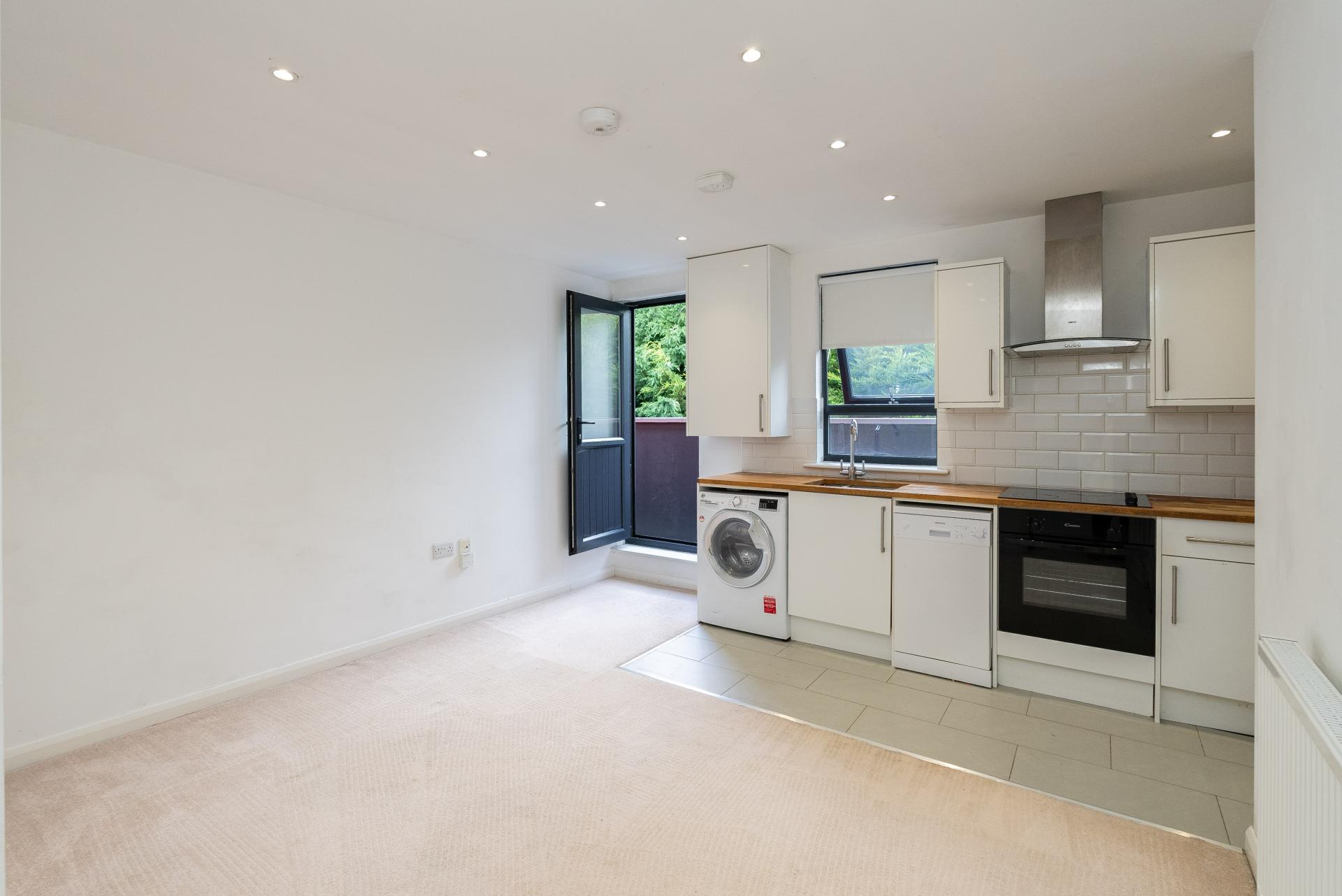 A secure communal front door opens into the lobby with stairs leading up to the 2nd floor. An internal hallway provides access to all rooms starting in the large side aspect kitchen/reception room which provides a wonderfully bright entertaining space and benefits from a door out to the balcony. The kitchen has been fitted with a modern range of base and eye level cabinetry, complemented by wood worktops, built in oven and hob, plus space for a range of appliances.