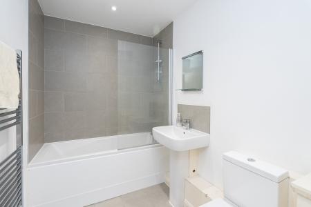 The main bedroom is a generous double and benefits from a door out to the balcony. The second is a good size single room, which could also be used as a home office and features a door out to the balcony. Both bedrooms are serviced by a well proportioned, modern bathroom with bath and overhead shower.