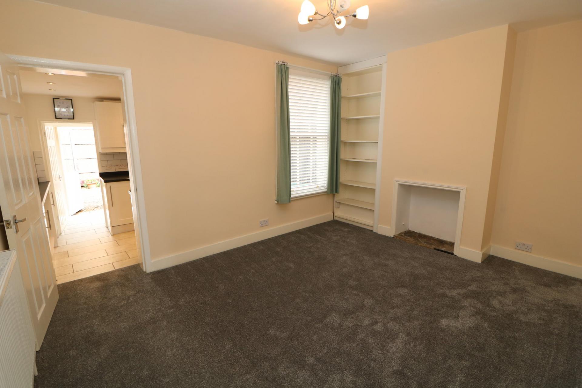 The property opens into a hallway which leads to a downstairs W/C and all key rooms. The front aspect lounge offers a bright and inviting space with a pleasant outlook to the front. Neutral décor and fitted carpeting create a warm and comfortable environment, with plenty of space for a large suite. Next is the dining room which features built-in shelving and a useful recessed alcove provide additional storage and display options with stairs leading up to the first floor. The modern fitted kitchen, thoughtfully designed with a range of shaker style wall and base units is complemented by contrasting worktops and metro-style tiled splashbacks. There is ample storage and work surface space, inset sink and drainer and room for freestanding appliances, creating a practical yet stylish cooking area. A door from the kitchen leads into a small utility space which provides direct access to the rear garden, allowing for easy indoor-outdoor living.