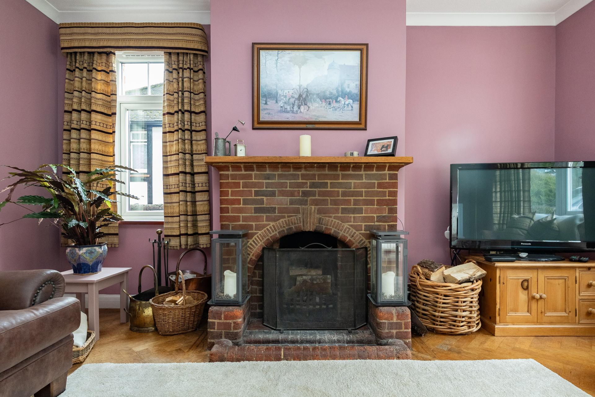 - CHARACTERFUL LIVING ROOM WITH ORIGINAL PARQUET FLOORING & OPEN FIREPLACE