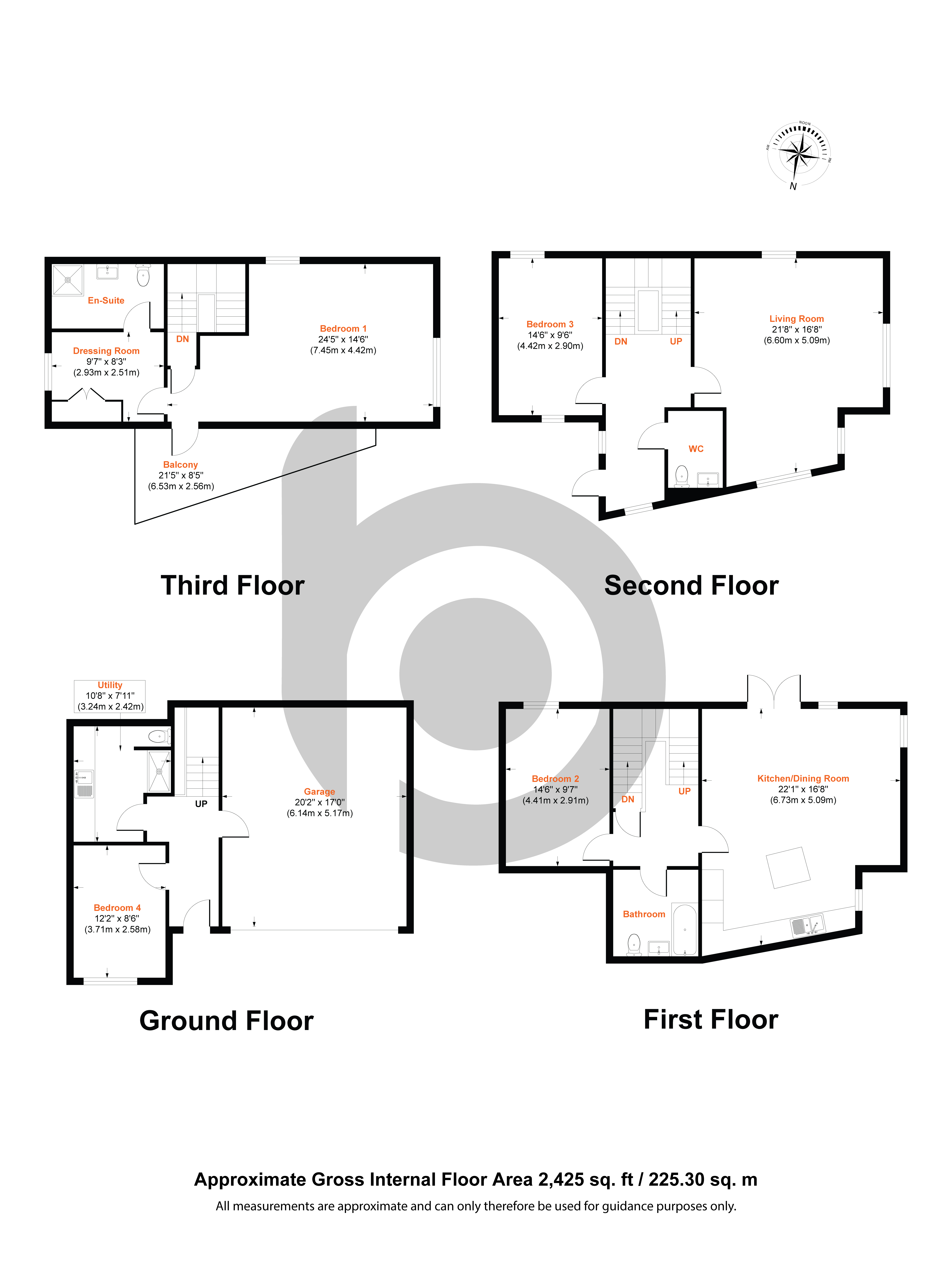 The internal layout comprises four double bedrooms, including a superb primary suite with its own en-suite bathroom and dressing area. A large, formal triple aspect sitting room provides an elegant space to relax and unwind, while the kitchen/diner, with doors opening onto the garden, creates the perfect setting for everyday living and entertaining. The home also benefits from a well-appointed main bathroom and a practical utility shower room.