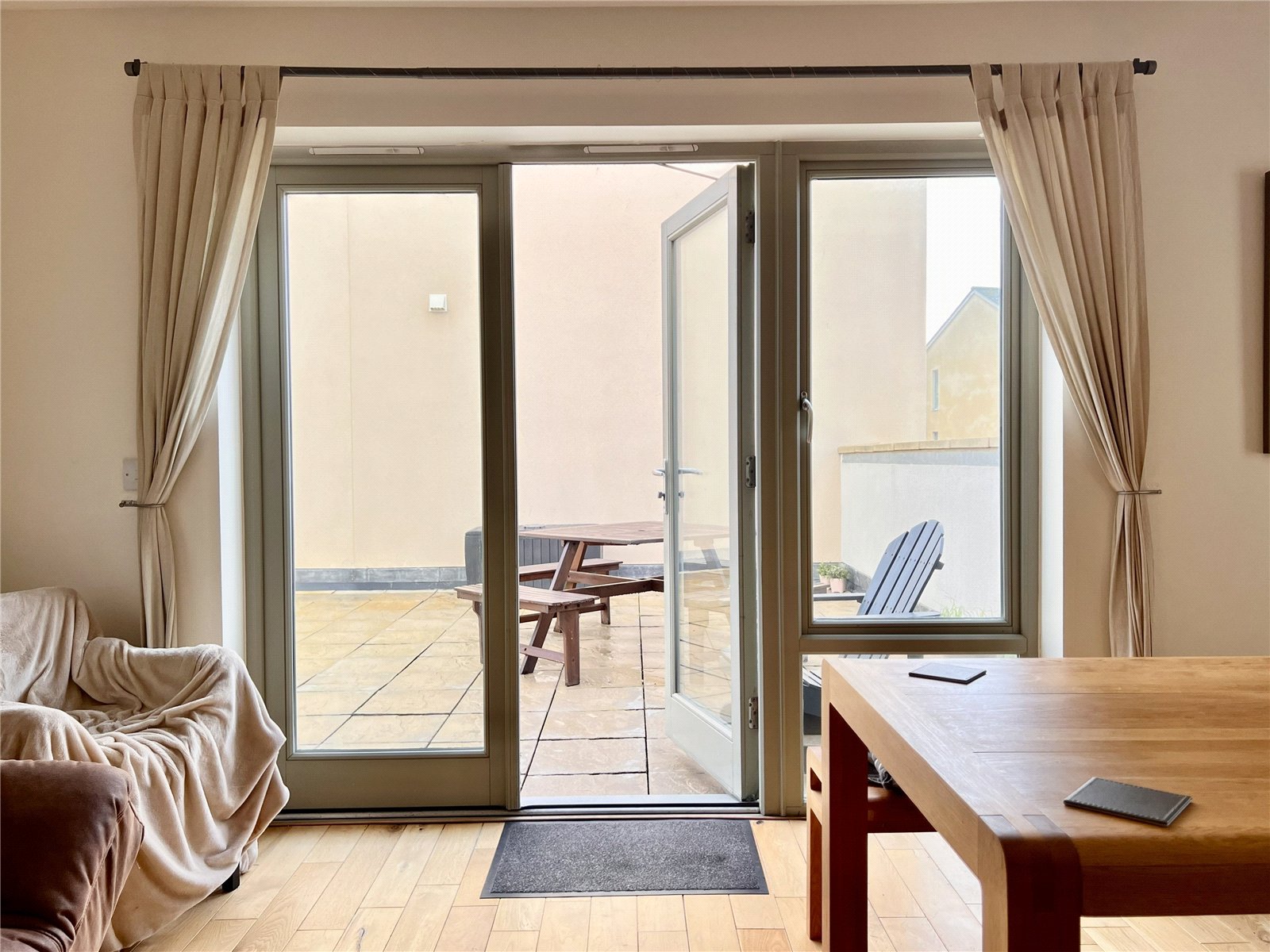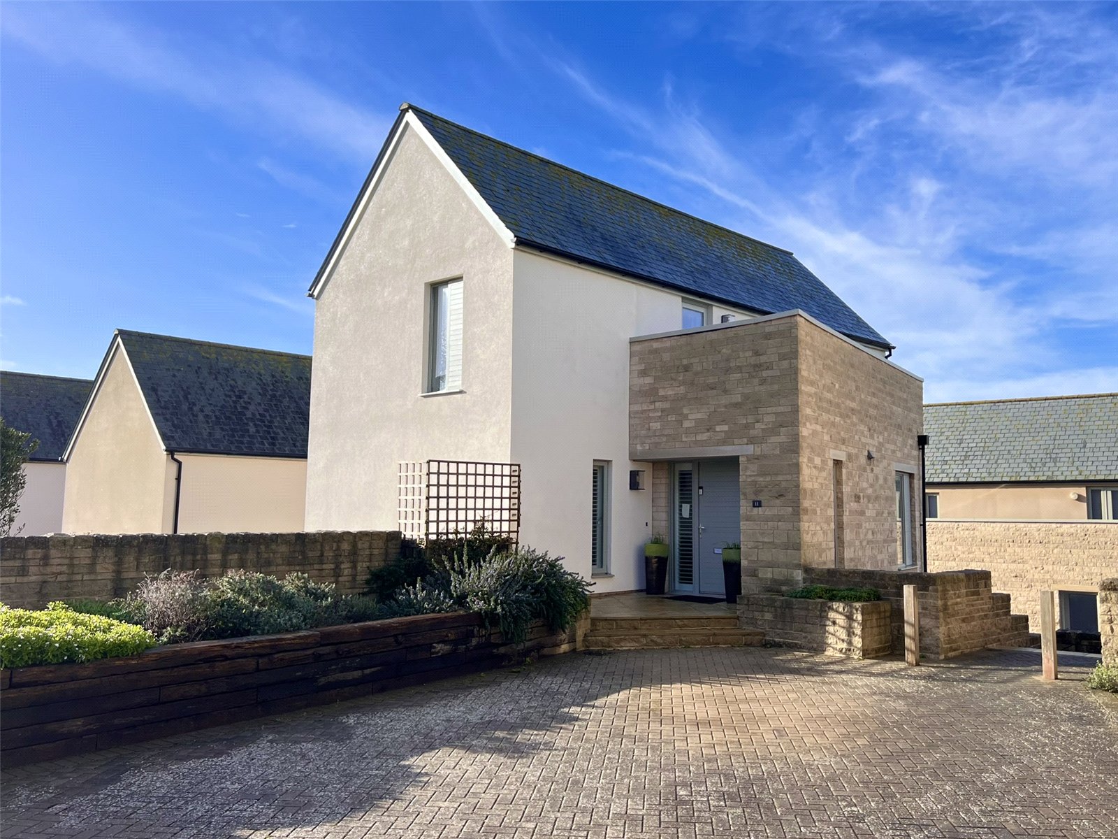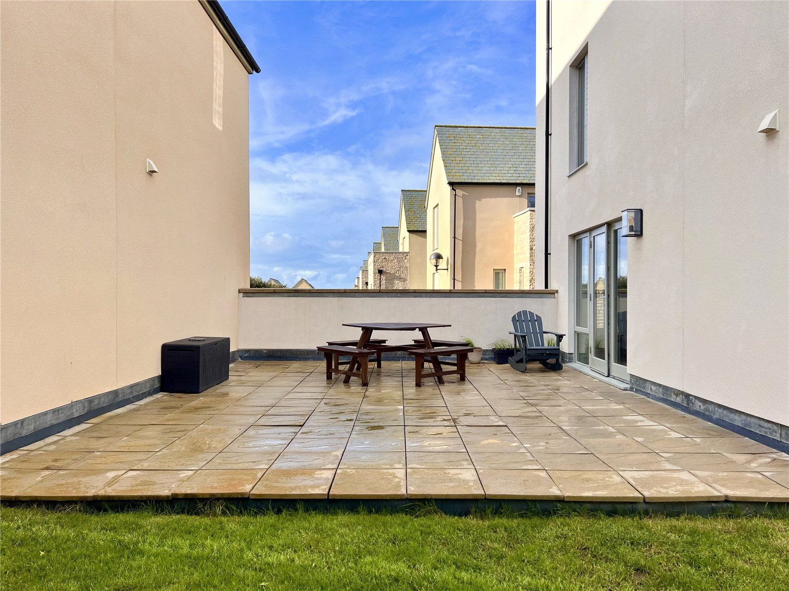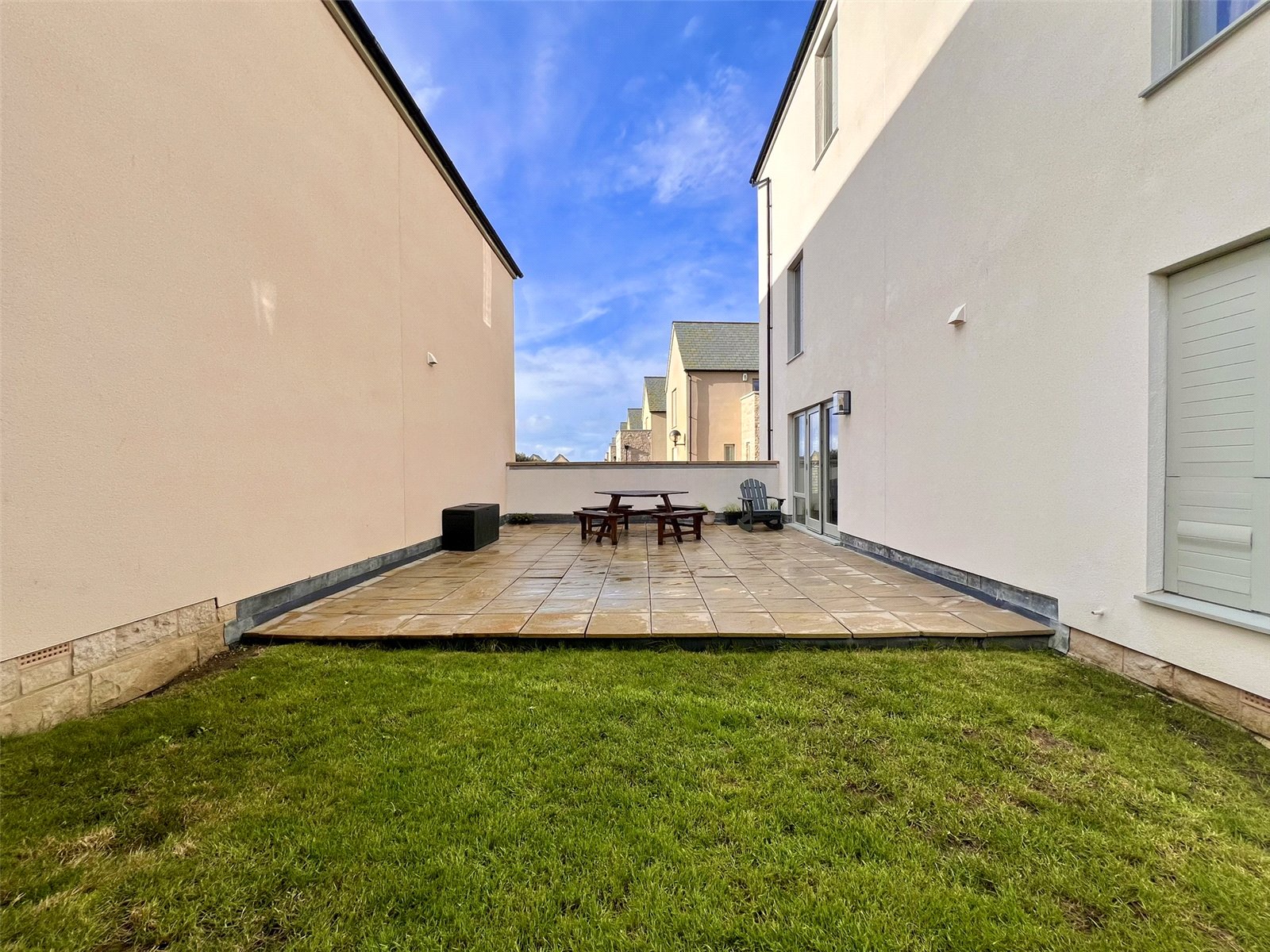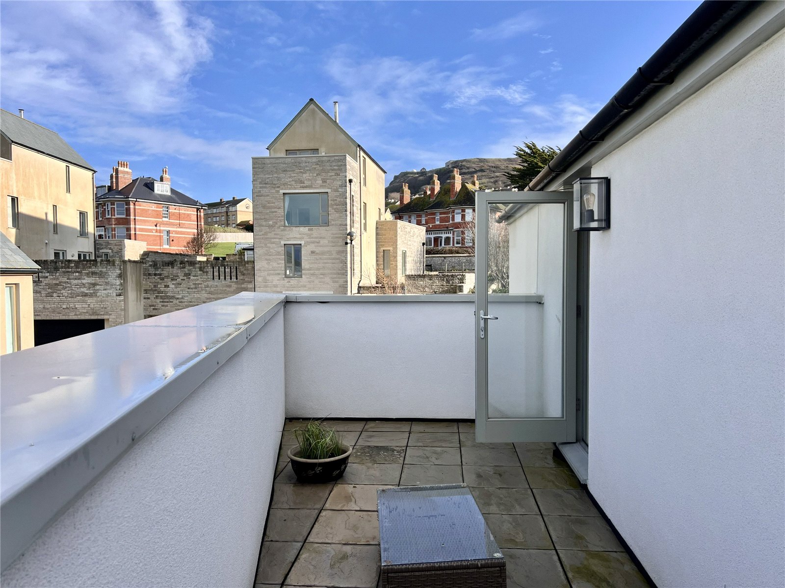 Outside, the property features a low maintenance garden, ideal for afternoon barbecues, along with a second floor terrace offering partial views towards Chesil Beach—a wonderful spot to enjoy the coastal air. Externally, there is access to the double garage, as well as driveway providing off road parking for up to three vehicles.