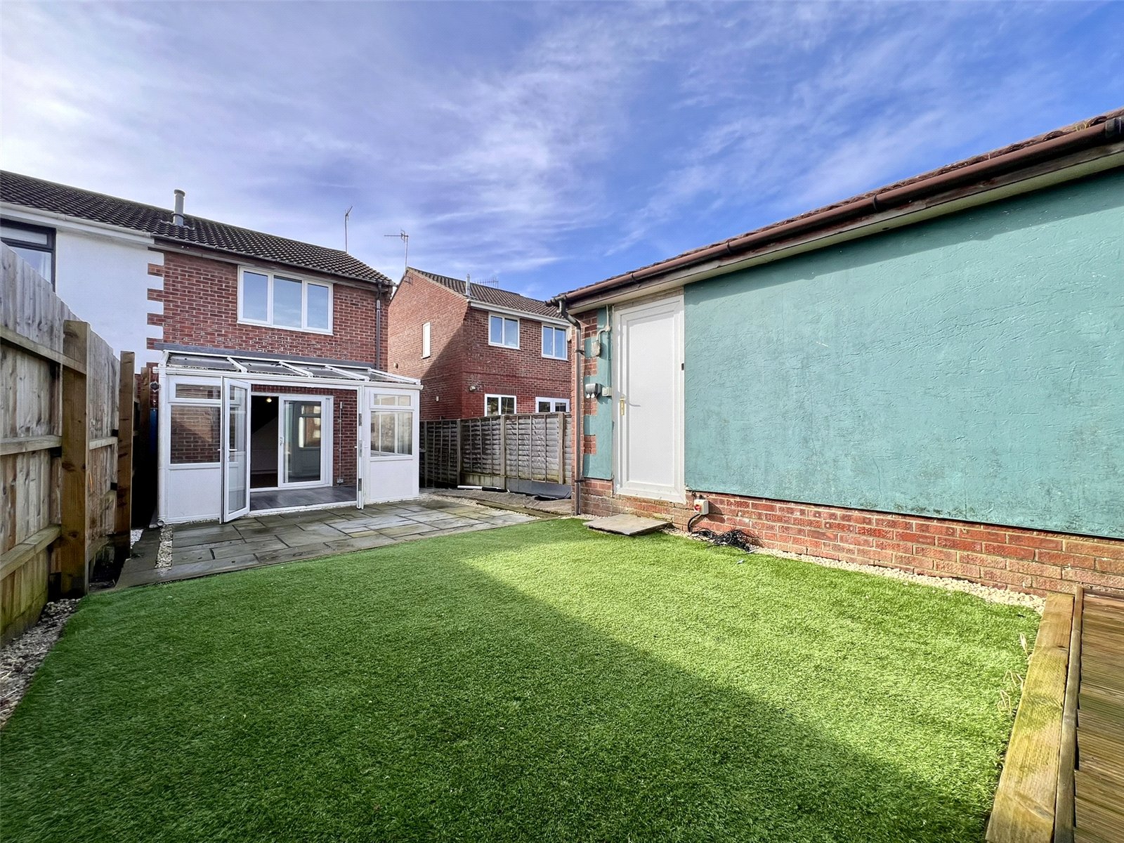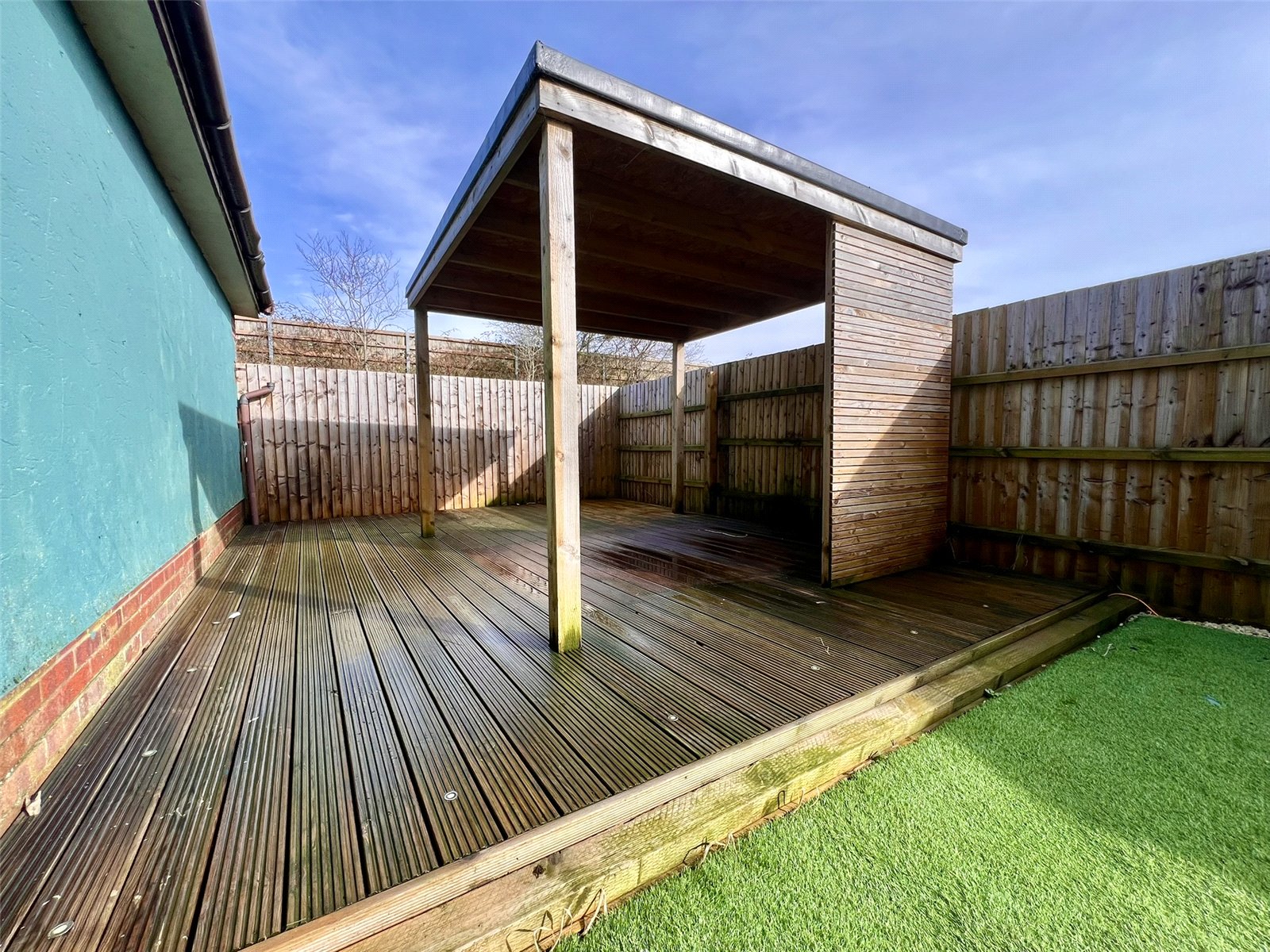The home enjoys a pleasant outlook towards the scenic Bincombe Bumps, providing a peaceful natural backdrop. The rear garden has been thoughtfully designed for easy maintenance, featuring astro turf, a patio seating area and a decked pergola ideal for a hot tub or outdoor furniture. The lawned front garden adds kerb appeal, while rear access and the garage enhance practicality.