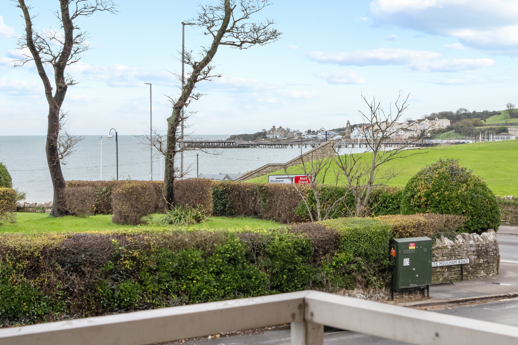 To the front is Sandpit Field, more manicured gardens that roll down to the beach. Close enough to have a quick swim at a moments notice! The balcony offers the perfect spot for people watching, and in summer a birds eye view of numerous events of Swanage Carnival which centres on Sandpit Field below.
