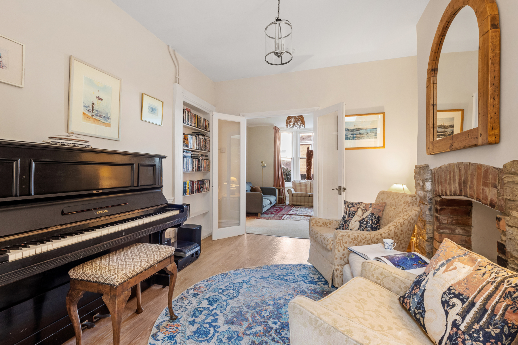 Step into this traditional Victorian townhouse, just moments from the sea, and into an ENTRANCE HALL with original floor tiles, setting the tone of period charm and character. A contemporary set of bookshelves complements the period features, while the wide original staircase, flooded with natural light, leads you to the upper floors. To the left is the SITTING ROOM, a beautifully proportioned space with bay windows flooding the room with light, and high ceilings enhancing the sense of space. The Purbeck stone fireplace forms the centrepiece, and the current owners often light this on winter evenings. It is very much the heart of family gatherings over winter.