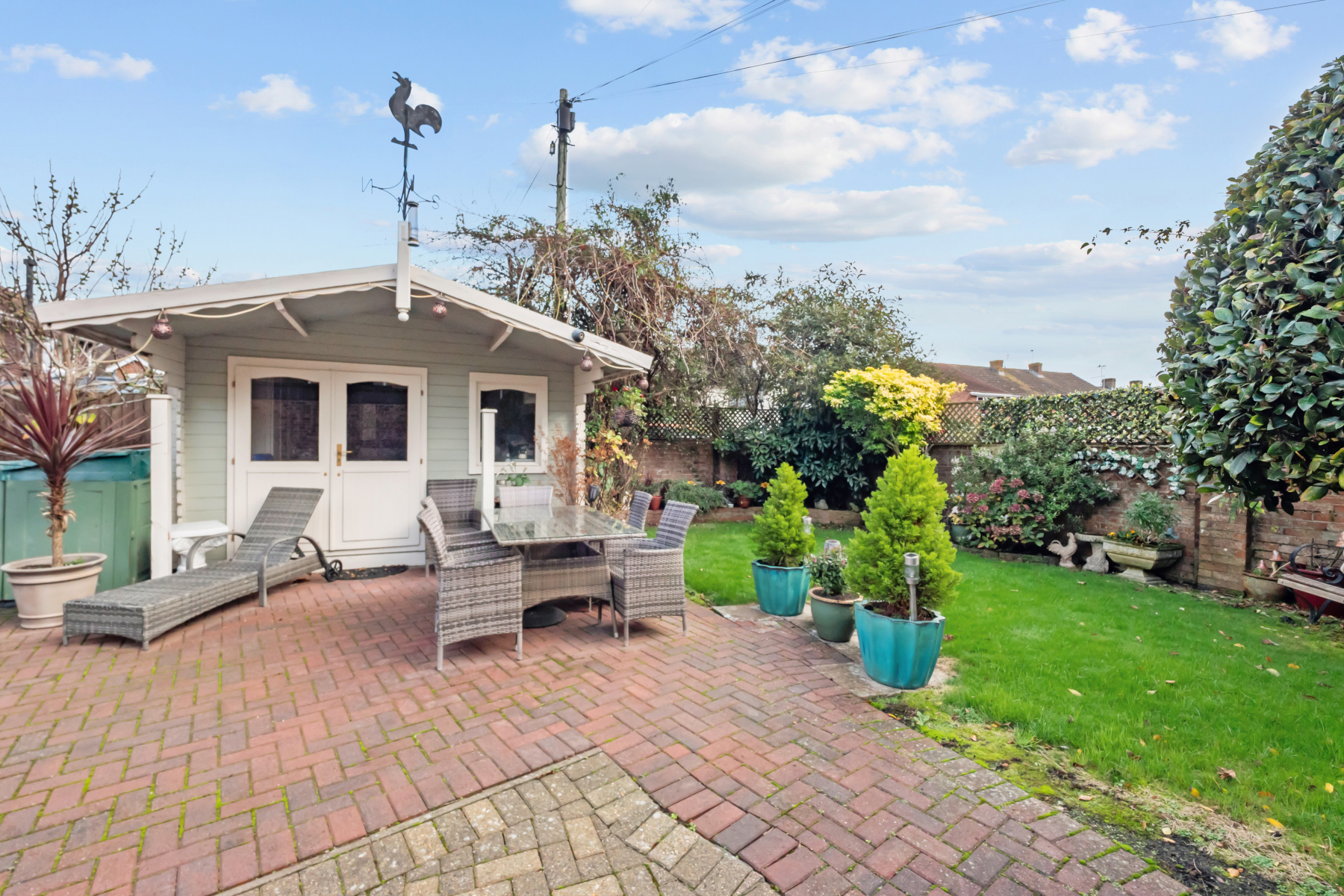 There is a generous SUMMER HOUSE, which has electricity to it, and is the perfect place to enjoy the garden in any weather.