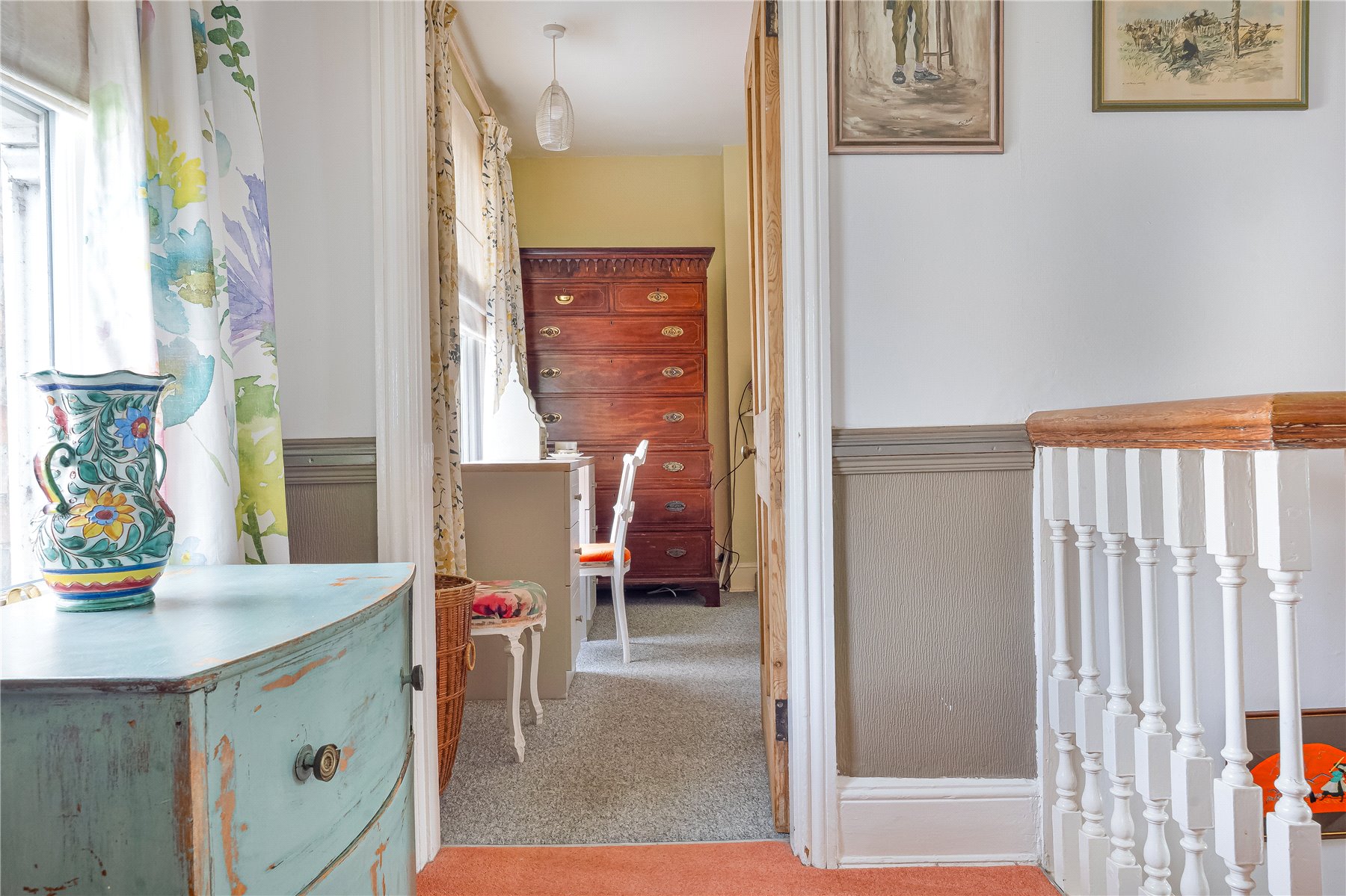 The heart of the home is the country style KITCHEN, thoughtfully designed with an extended breakfast area that captures natural light, creating a warm and welcoming atmosphere for a relaxing start to your day. Ample cupboards and workups, an AGA plus an electric cooker, space for fridge/freezer and a Butlers sink make this a family friendly and comfortable place to be. From the breakfast area, French doors lead out to the sunny patio area, a super place to spill out to for morning coffee in the fresh air. A practical UTILITY ROOM and convenient W.C complete the ground floor, ensuring functionality for a busy household.