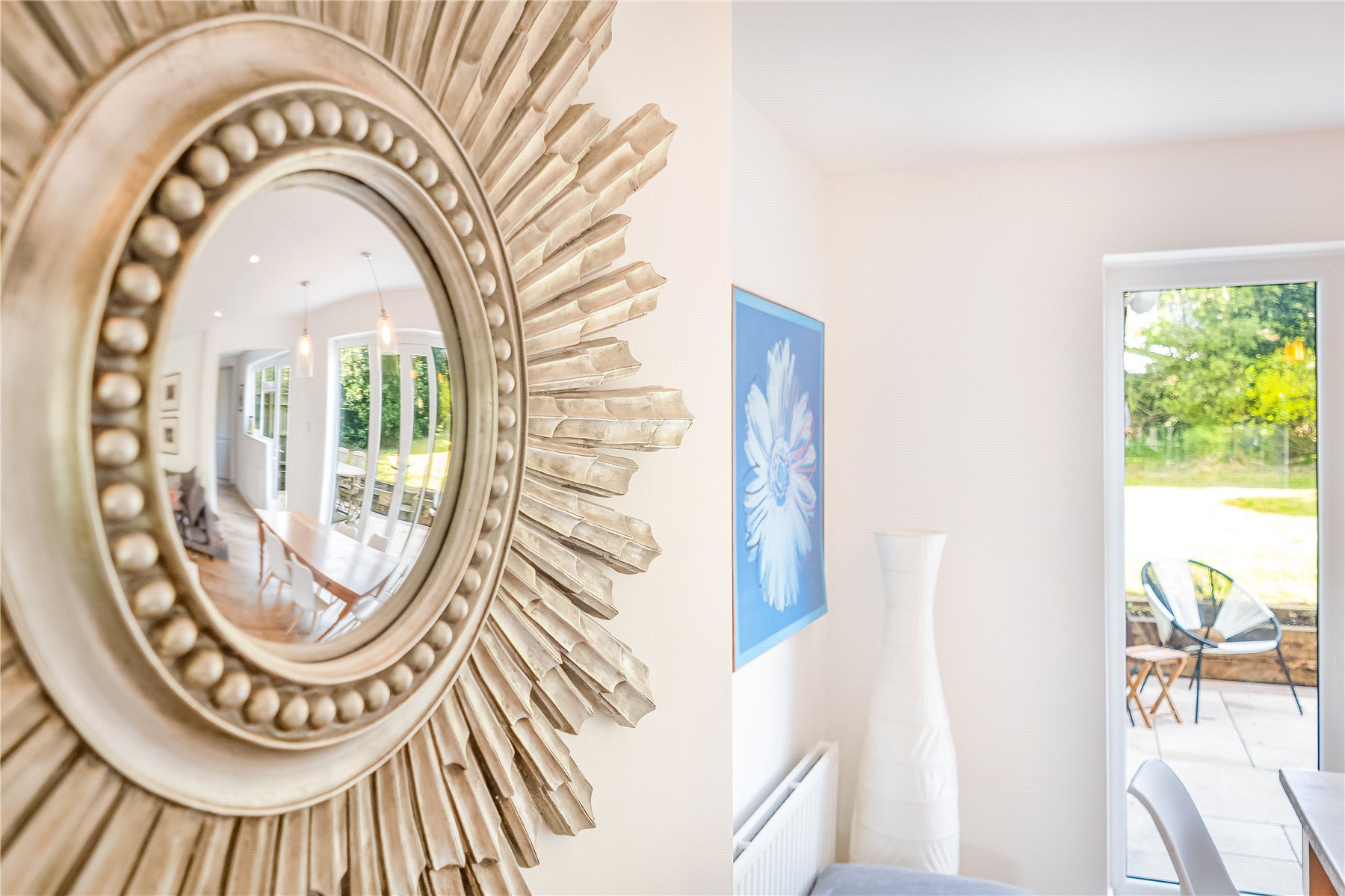 Begin your journey in the fully enclosed ENTRANCE PORCH perfect for shedding boots after a countryside walk. As you enter the HALLWAY , discover a UTILITY CUPBOARD with double doors, providing plumbing and space for a washing machine with a dryer above, an under-stair cupboard provides further storage opportunities.