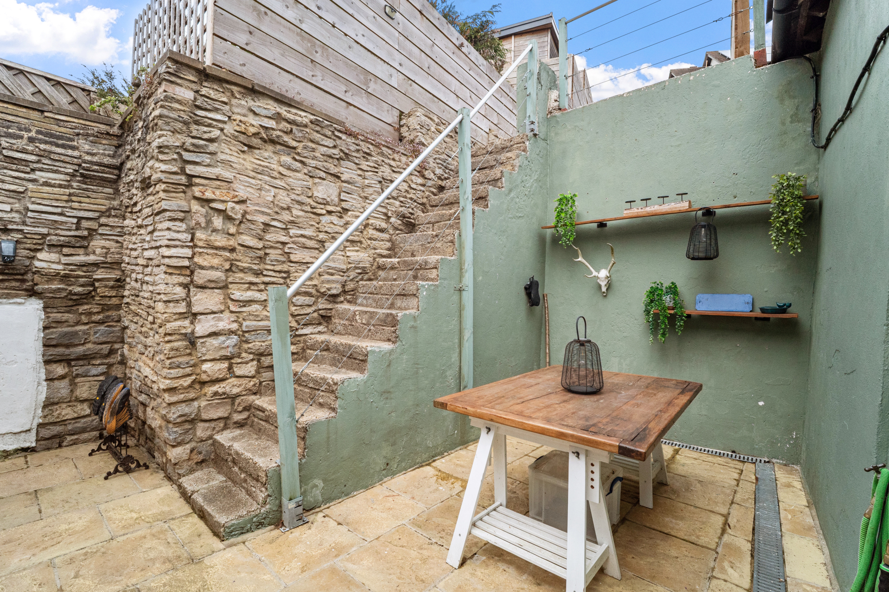 This natural stone extends with steps up to further levels of the GARDEN. Ideal for creating a fabulous display of plant pots and seating. Midway up, there is a cute platform, which is a perfect afternoon tea spot, just enough space for a bistro table and chairs and plenty of room for scones and jam as a Dorset Cream Tea. Which is first? Cream or jam?