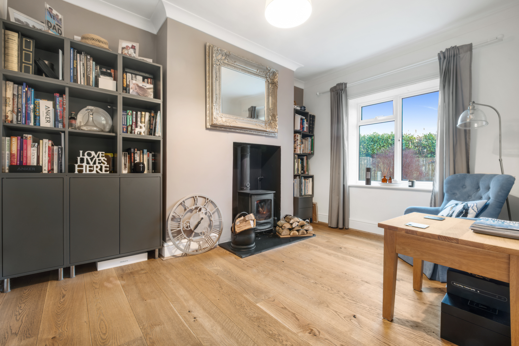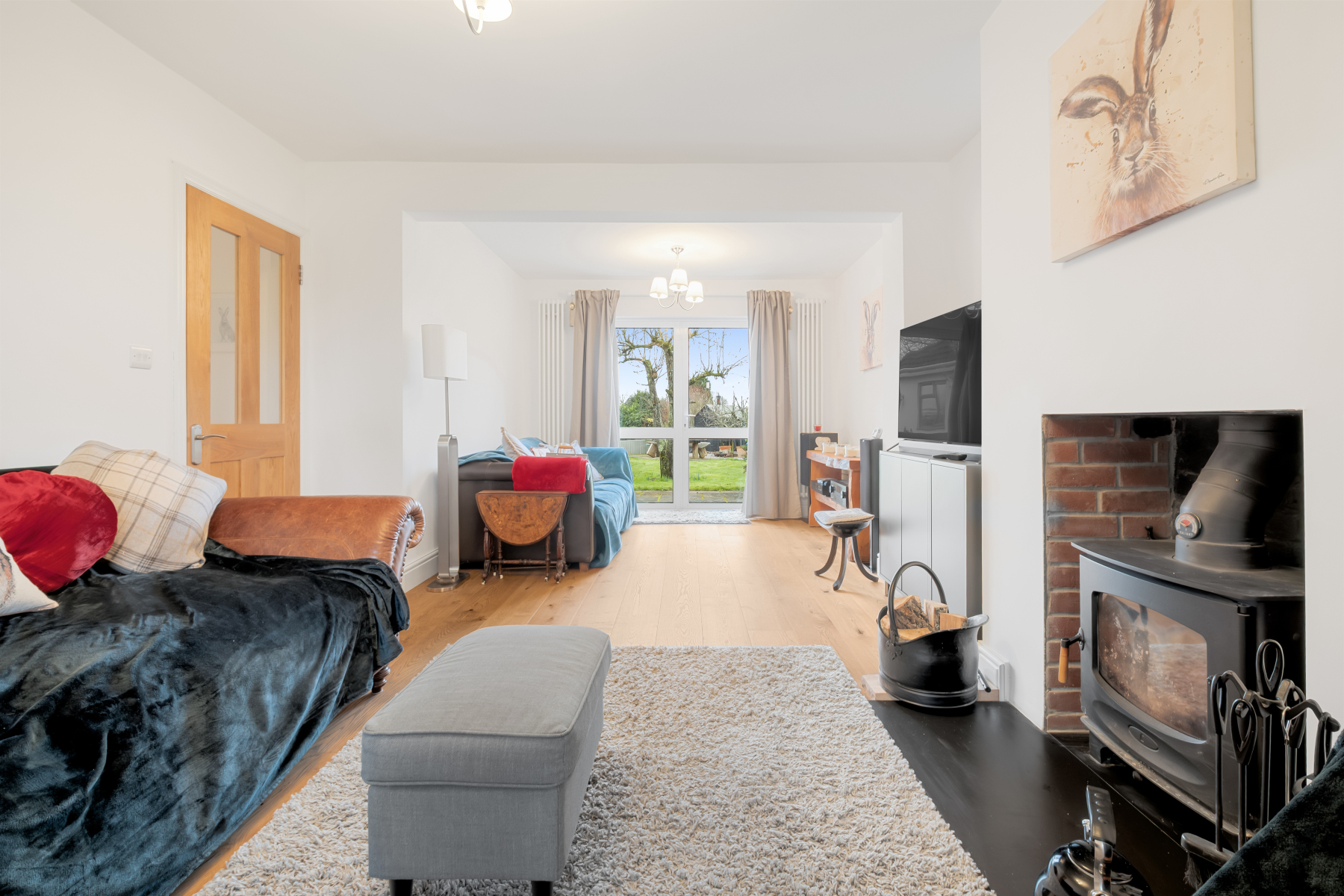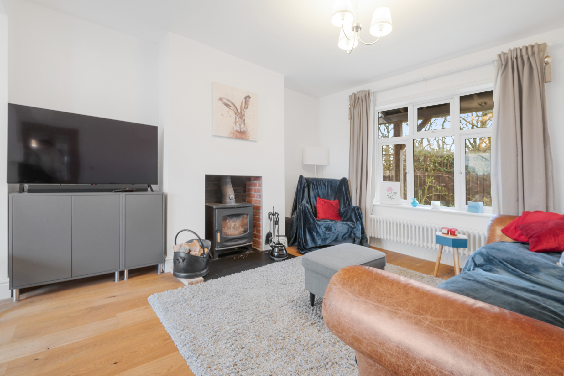 Generous sitting room with wood burner