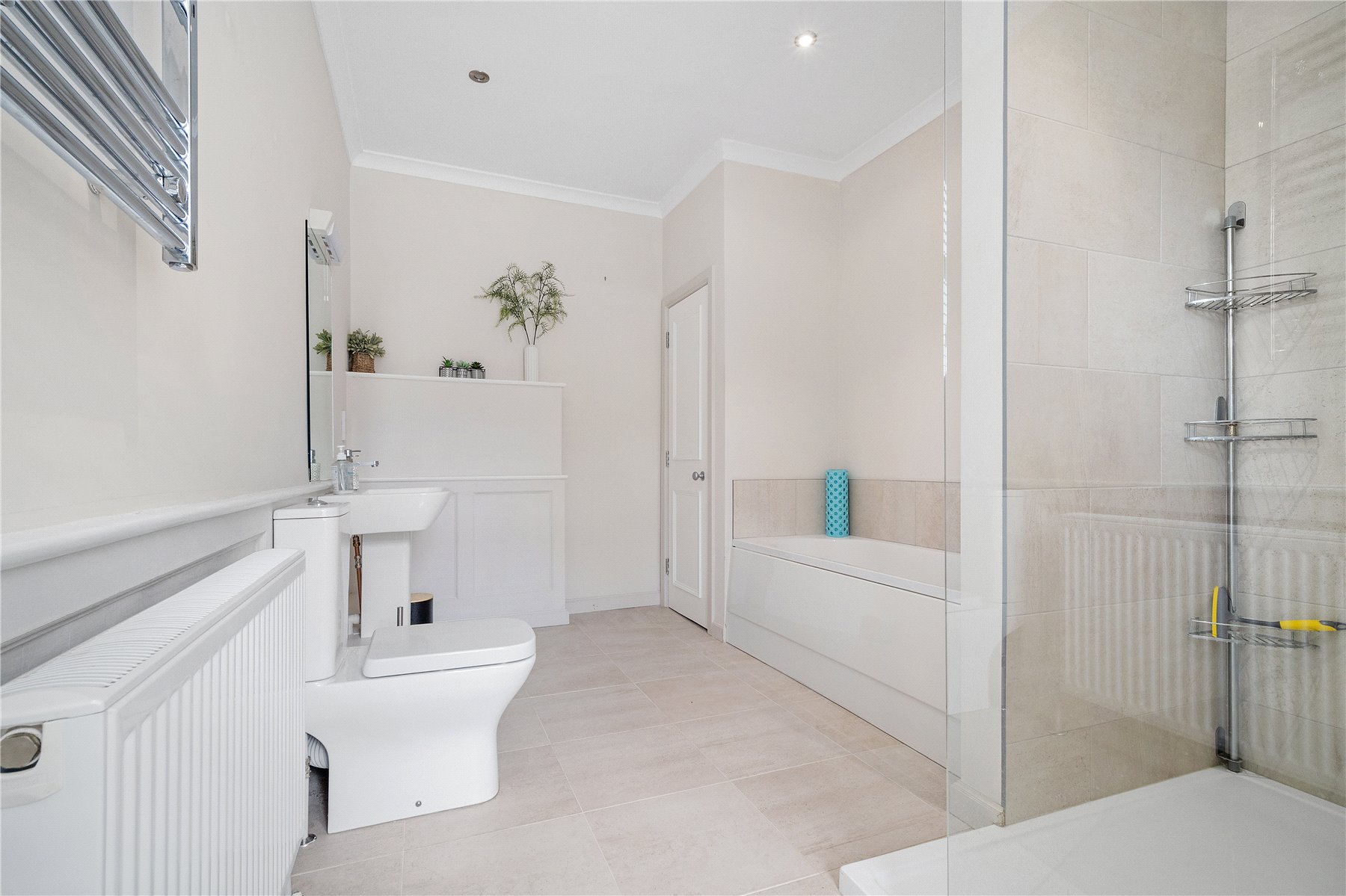 The PRINCIPAL BEDROOM is a bright, airy, comfortable double bedroom with a large window overlooking the courtyard garden and also features a period cast iron fireplace. The ENSUITE BATHROOM is modern and stylish with separate shower, wash-hand basin, W.C and heated towel rail.