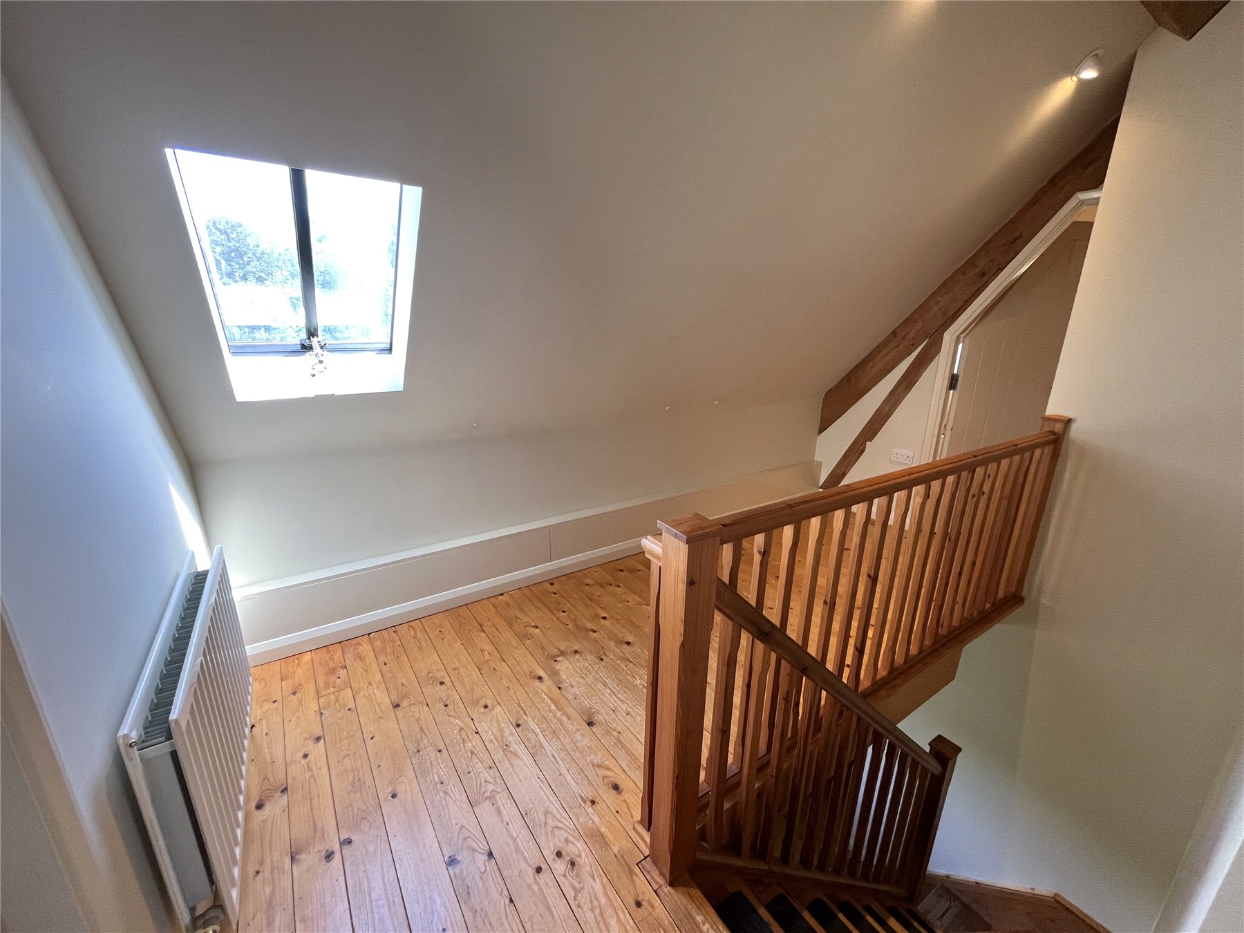 Upstairs, the layout continues to impress. A vast PRINCIPAL BEDROOM sits to one end of the barn and offers excellent proportions, with ample space for a full suite of furniture. The centrally located BATHROOM is well positioned to serve both this room and the rest of the first floor. To the other side is a striking open-plan KITCHEN / DINING ROOM extending the full length of the barn, with windows on both sides providing a bright triple aspect. The kitchen includes an integrated electric oven with hob, along with space for standard white goods, and there is ample room for a large dining table or the addition of a snug area.