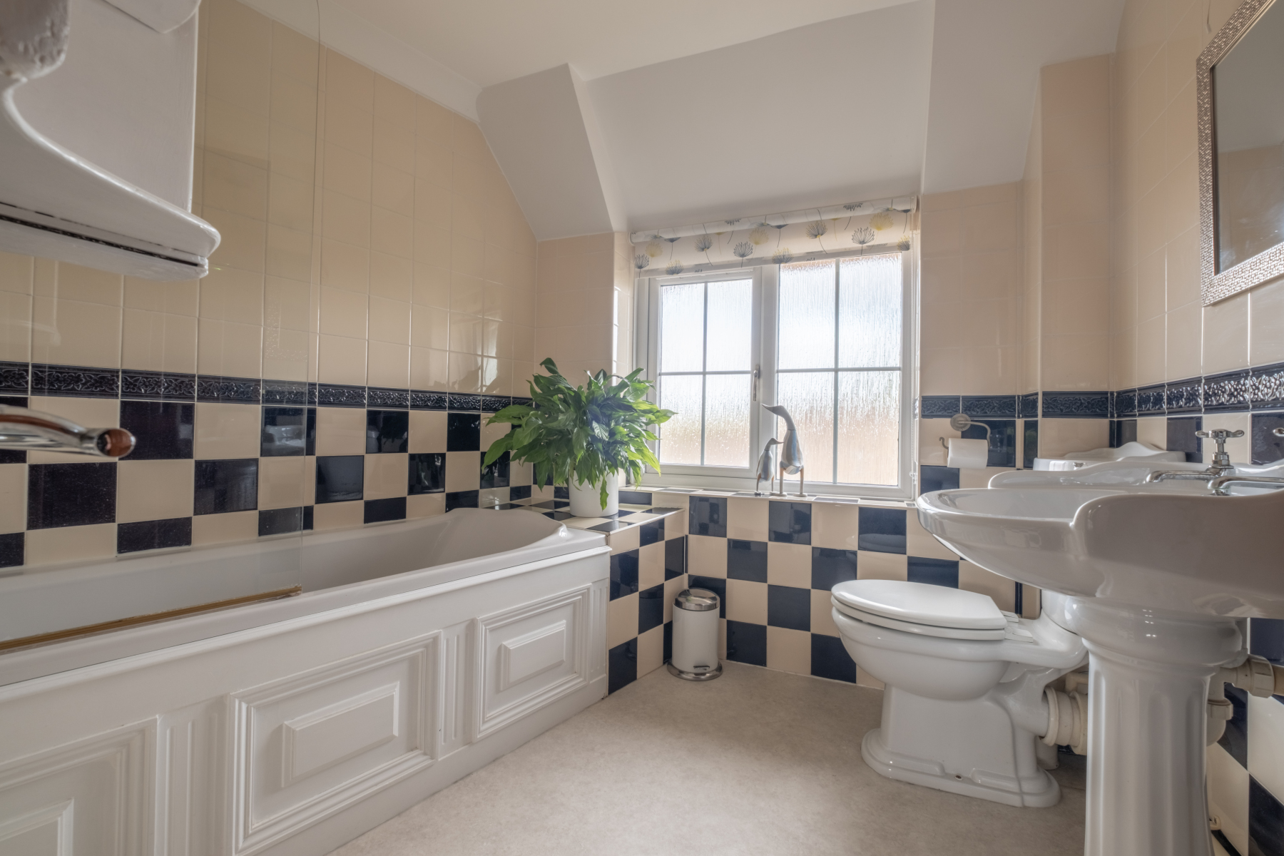 Upstairs, the galleried LANDING is open and light, providing a sense of space and connecting the first-floor rooms elegantly. The PRINCIPAL BEDROOM is a spacious and restful retreat, filled with natural light and offering plenty of room for freestanding furniture, complemented by a contemporary and stylish ENSUITE with shower cubicle, W.C., and wash hand basin. The second BEDROOM is also a comfortable double, ideal for children, guests, or as a welcoming space for visiting family. The third BEDROOM, centrally situated between the others, is also able to accommodate a double bed and furniture, further showcasing the property's flexibility and space. The BATHROOM is finished to a high standard, with contemporary fittings presented in a classic style, including a bath with shower over, wash basin, and W.C. Each room is presented immaculately, reflecting the same attention to detail seen throughout the house.