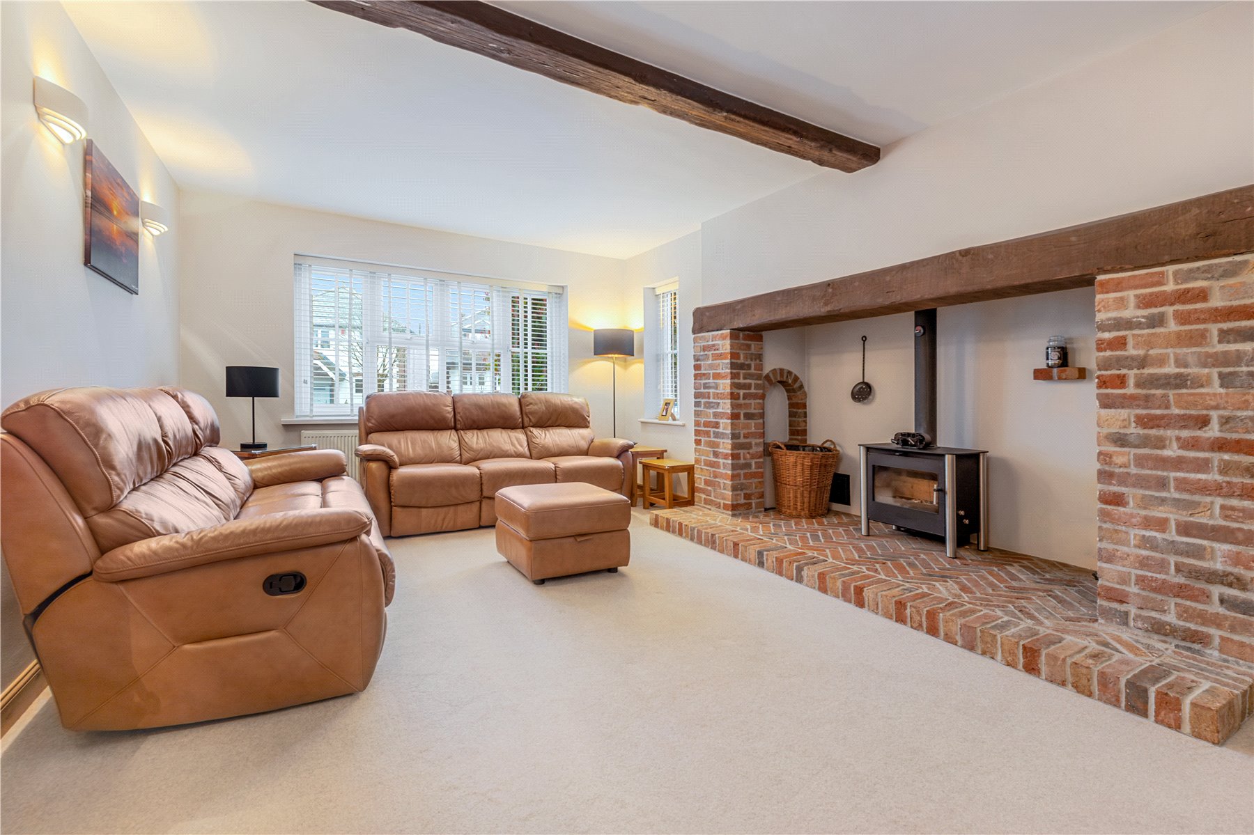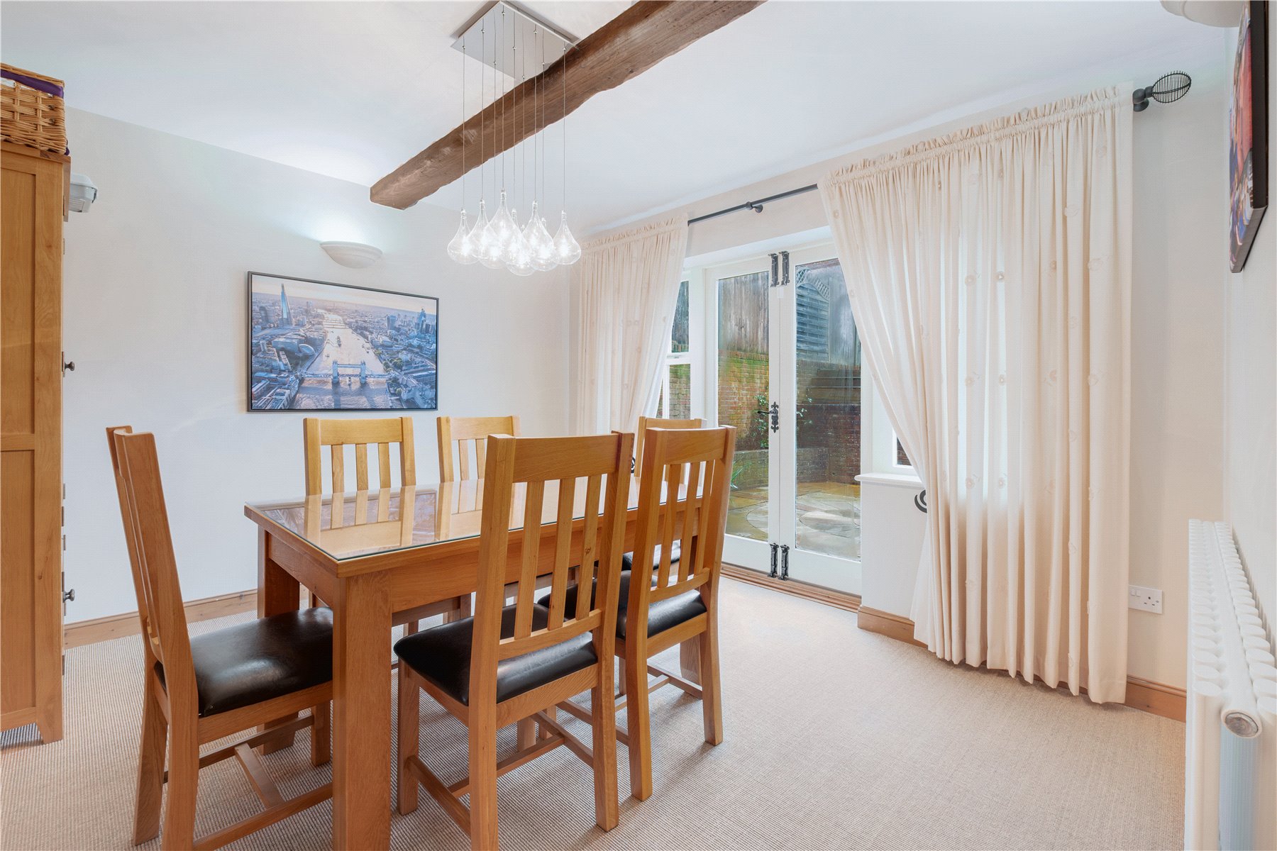 The SITTING ROOM is a particularly comfortable and well-proportioned space, centred around a brick fireplace with wood burning stove forming a natural focal point. Double doors connect through to the DINING ROOM, creating an excellent arrangement for both everyday living and more formal entertaining, while French doors from the dining room open directly onto the garden.