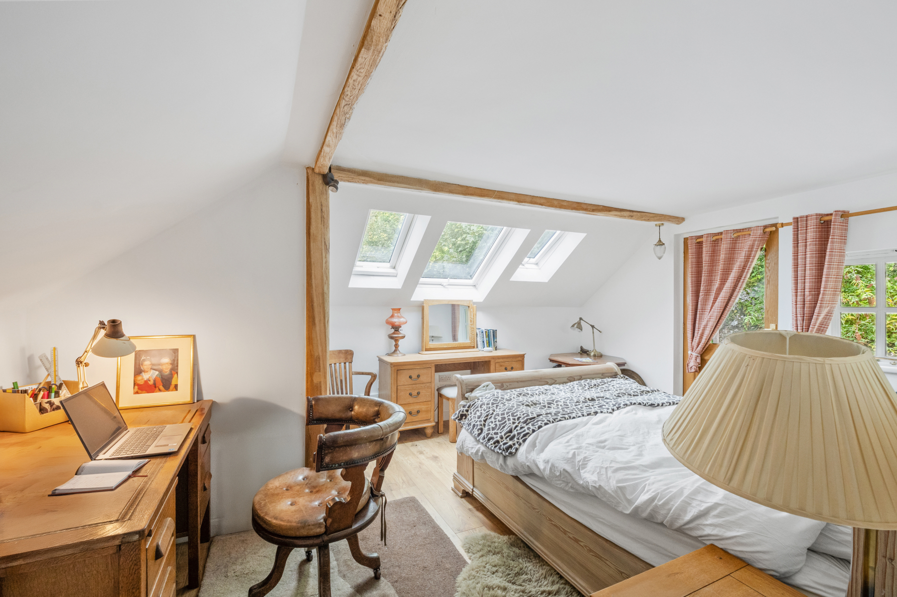 The first floor is approached from the handsome Oak staircase. Situated on the landing is a cupboard housing the Worcester boiler (LPG). The light and airy PRINCIPAL BEDROOM is a comfortable double, with built in storage, and access to private decked ROOF TERRACE. The Bedroom also benefits from the ENSUITE SHOWER / BATHROOM, with roll top bathtub, vanity unit with wash hand basin, WC. with concealed cistern and shower cubicle. BEDROOM TWO is a further double bedroom, with ENSUITE SHOWER ROOM.
