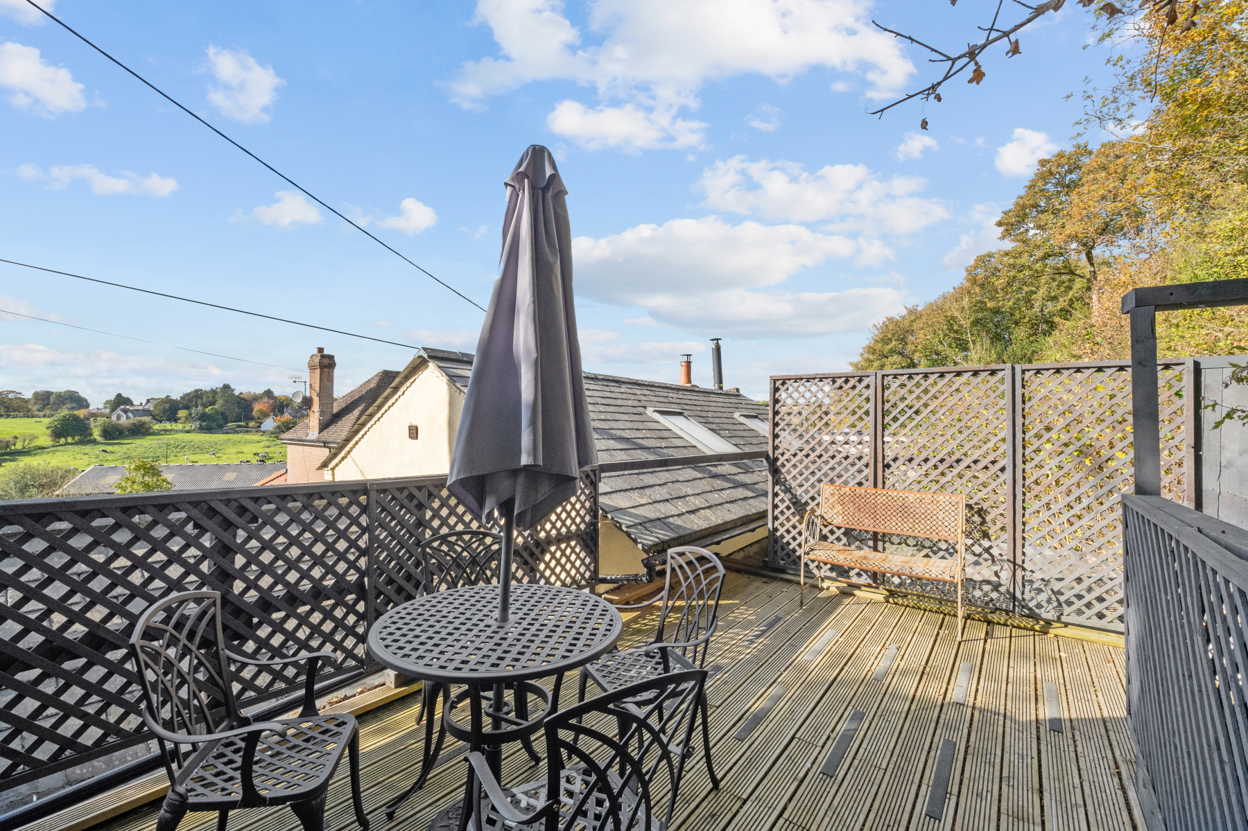 To the front, there is private off-road PARKING for one vehicle. A small, covered and paved COURTYARD provides a sheltered outdoor area, ideal for storage or seating. From here, an external timber staircase leads to a raised SUN DECK a wonderful spot to sit and enjoy the open rural outlook, entertain guests, or simply relax and take in the tranquillity of the setting.