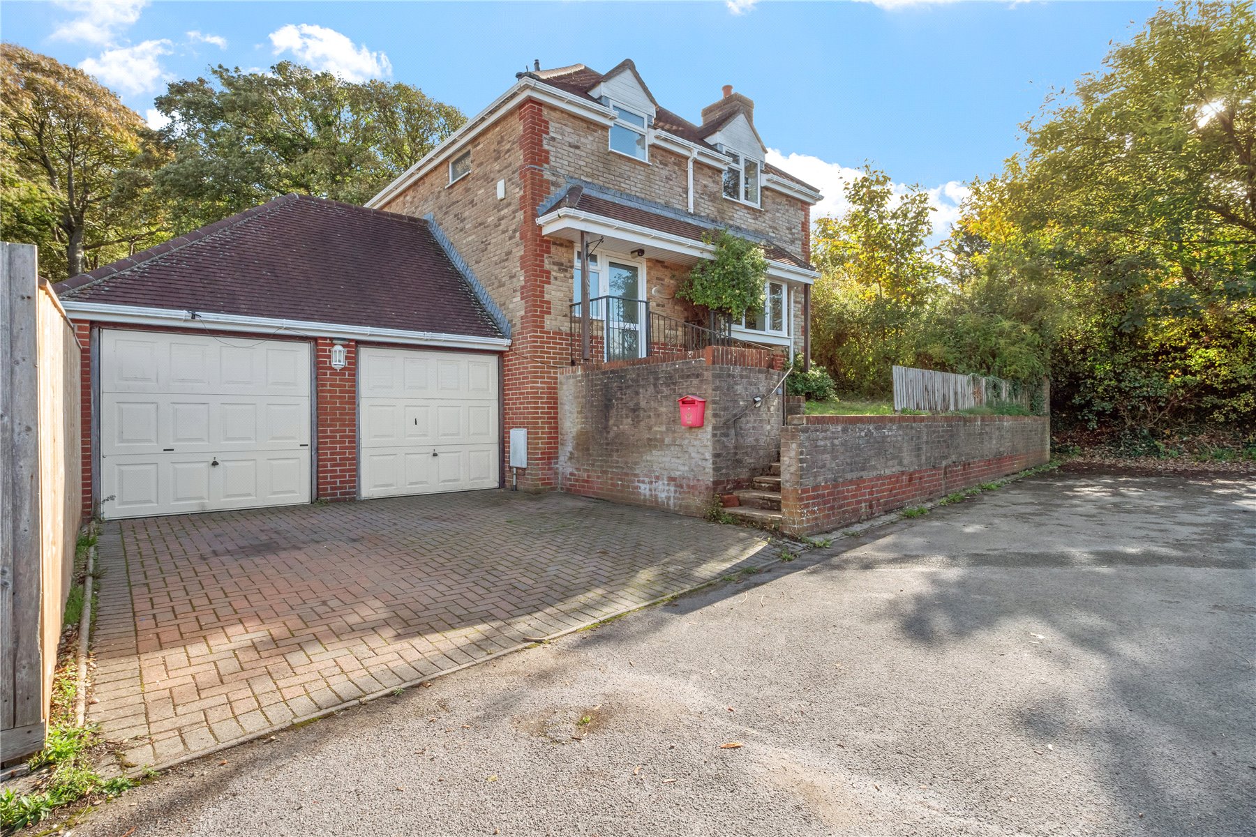 To the front of the property, a driveway provides off-road parking and leads to a double garage, offering excellent storage and workshop potential. A set of steps rises to the front door, giving the property an elevated approach and has the small front garden laid to lawn. To the rear, the garden is fully enclosed, with an area of shingle extending directly from the conservatory, providing a practical spot for outdoor seating or potted plants. Beyond this, the garden has a raised level that is predominantly laid to lawn, creating a versatile space suitable for both children and pets. Bordered by timber fencing, and with mature trees providing a natural backdrop, the garden enjoys a pleasant outlook and offers ample scope for landscaping or outdoor entertaining, making it an ideal extension of the home's living space.
