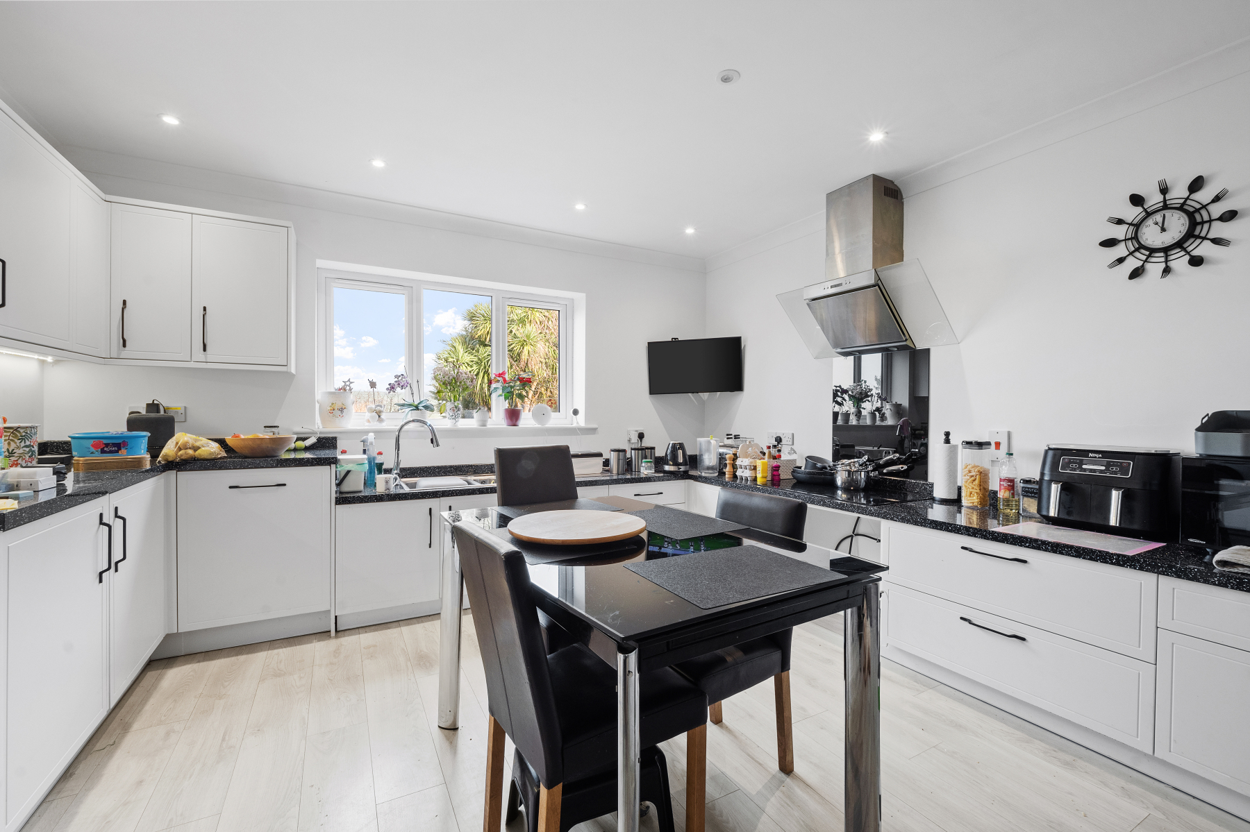 The fully enclosed ENTRANCE PORCH leads into the inviting ENTRANCE HALL, from here doors radiate out to most of the rooms, and on a practical note: access to the generous part boarded loft with both power and light. Discreetly positioned off the hall is the BATHROOM with natural light coming courtesy of the sun tube, the suite comprising wash hand basin, bathtub and W.C. The OPEN PLAN KITCHEN AND DINING ROOM has an array of both wall mounted cupboards together with floor-based cupboards, with generous food preparation counter tops in part lowered for accessibility. Integrated appliances include an electric induction hob with fume hood over, electric oven and dishwasher. The sink is ideally positioned under the window and enjoys views of the garden and beyond. There is ample room for dining, the area readily accommodating a table and chairs for entertaining family and friends. In all a most sociable space both functional and stylish. Lying off the kitchen for laundry needs is the UTILITY ROOM, with utility sink, and with space for washing machine, dryer and additional appliances, a door provides access to outside.
