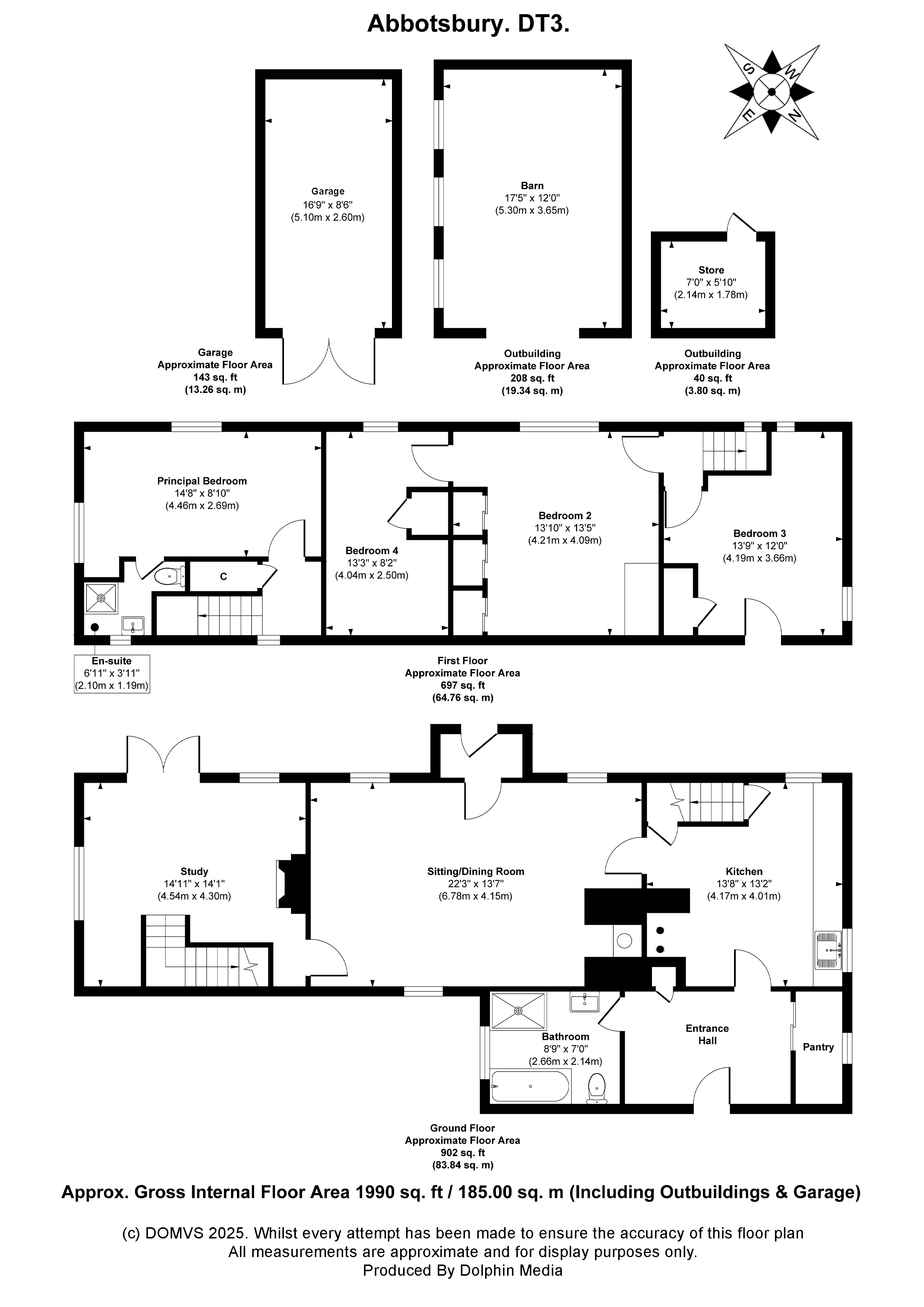 Outbuildings include a DETACHED BARN, ideal for workshop space, storage, or even conversion (subject to consents). There is also a SEPARATE STORE for tools or garden equipment.