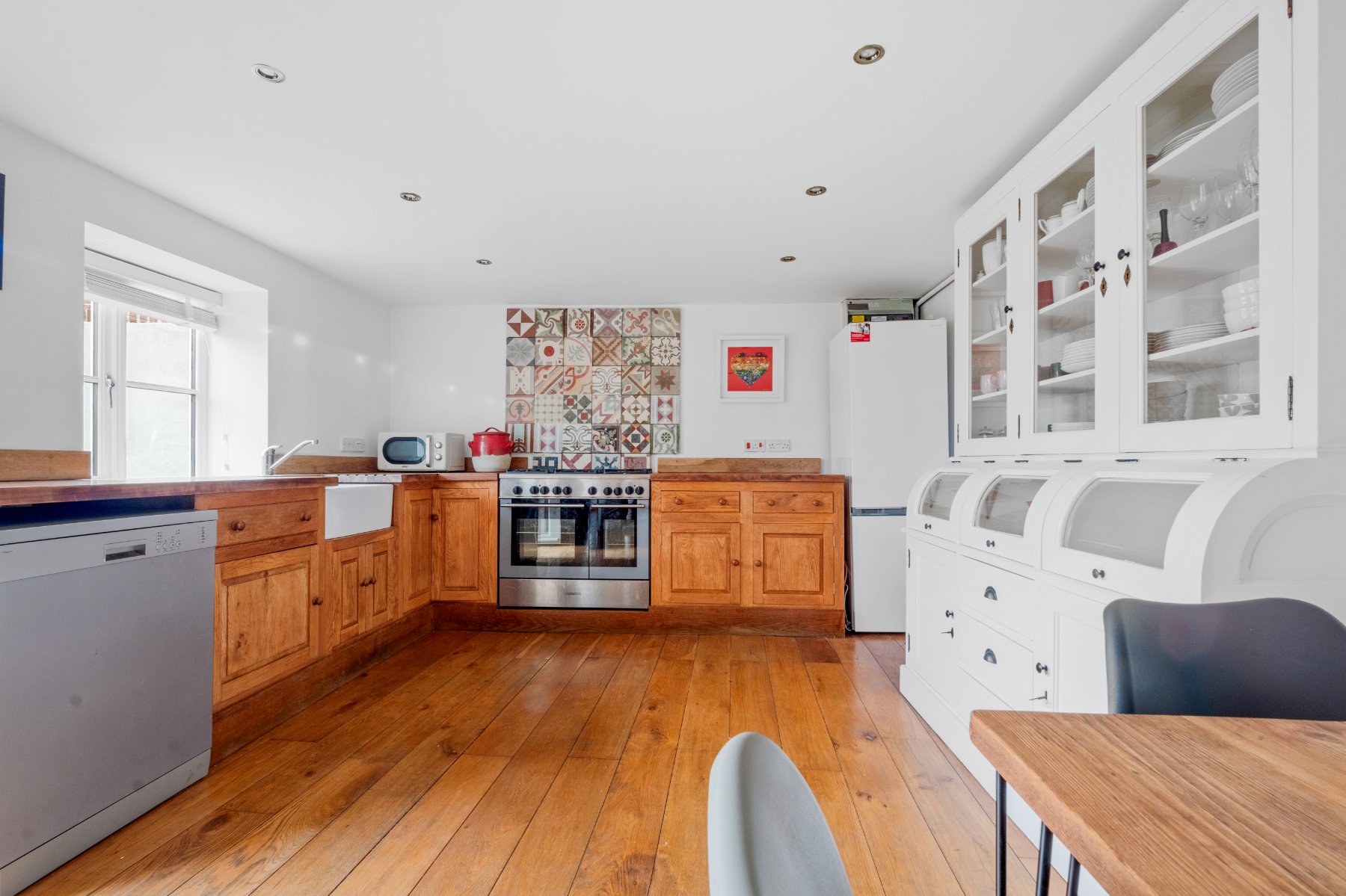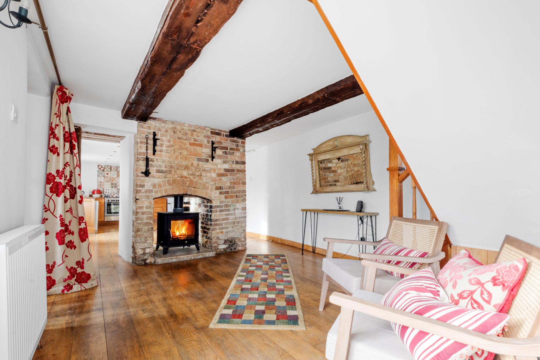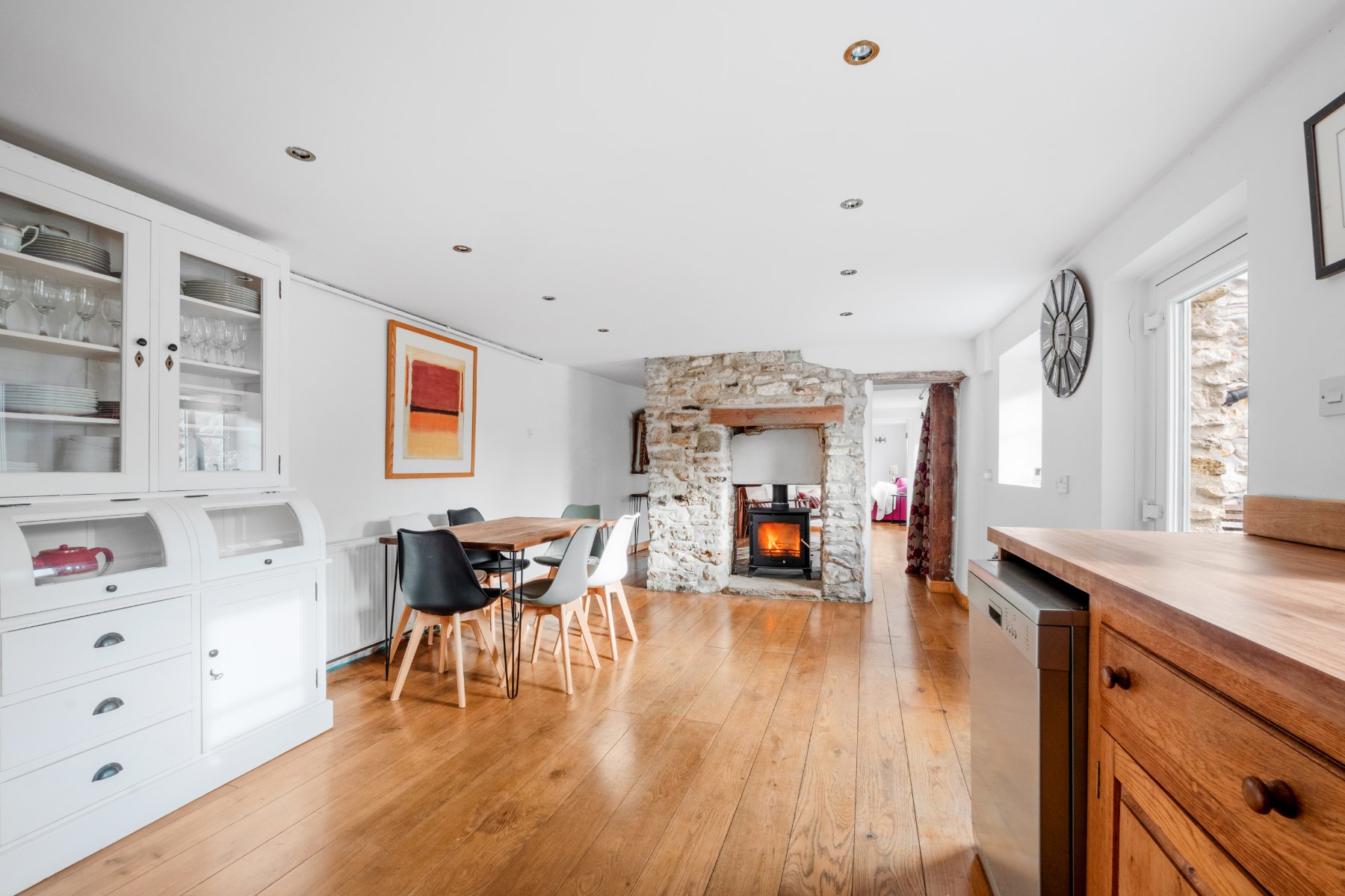 Step into White Horse Cottage, a delightful three-bedroom detached cottage that effortlessly combines the charm of its origins with modern comforts. As you enter through the welcoming PORCH, you are greeted by open plan living spaces that invite light and warmth into every corner. Near the porch there is a CLOAKROOM/UTILITY Room with plumbing for a washing machine, WC and washhand basin. The double-sided fire serves as a focal point, offering a cosy ambience that flows seamlessly between the living areas. Wooden floors add a touch of elegance, complementing the original cottage details that whisper stories of the past. The SITTING ROOM is a cosy haven, centred around an open fireplace that promises snug evenings and a comforting glow. The farmhouse KITCHEN and DINING area is a true delight, with its airy atmosphere and wood accents, creating an inviting space for gatherings. This area opens directly onto the GARDEN, perfect for enjoying meals with a view.