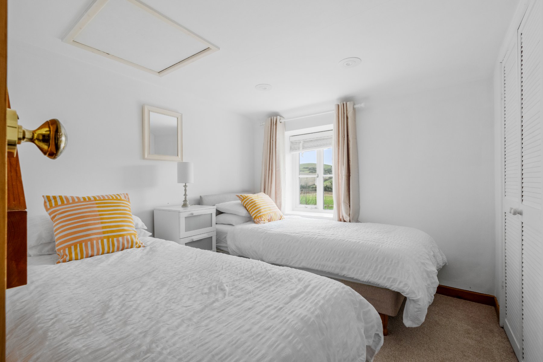 From the reception hall, stairs gracefully rise to the bedrooms above. Each bedroom offers a peaceful retreat, with windows framing picturesque views of the surrounding hills. The PRINCIPAL BEDROOM comes complete with its own ENSUITE SHOWER ROOM, while BEDROOM TWO and THREE both provide built-in storage, ensuring practicality meets style. The FAMILY BATHROOM is modern adding a touch of luxury to everyday living.