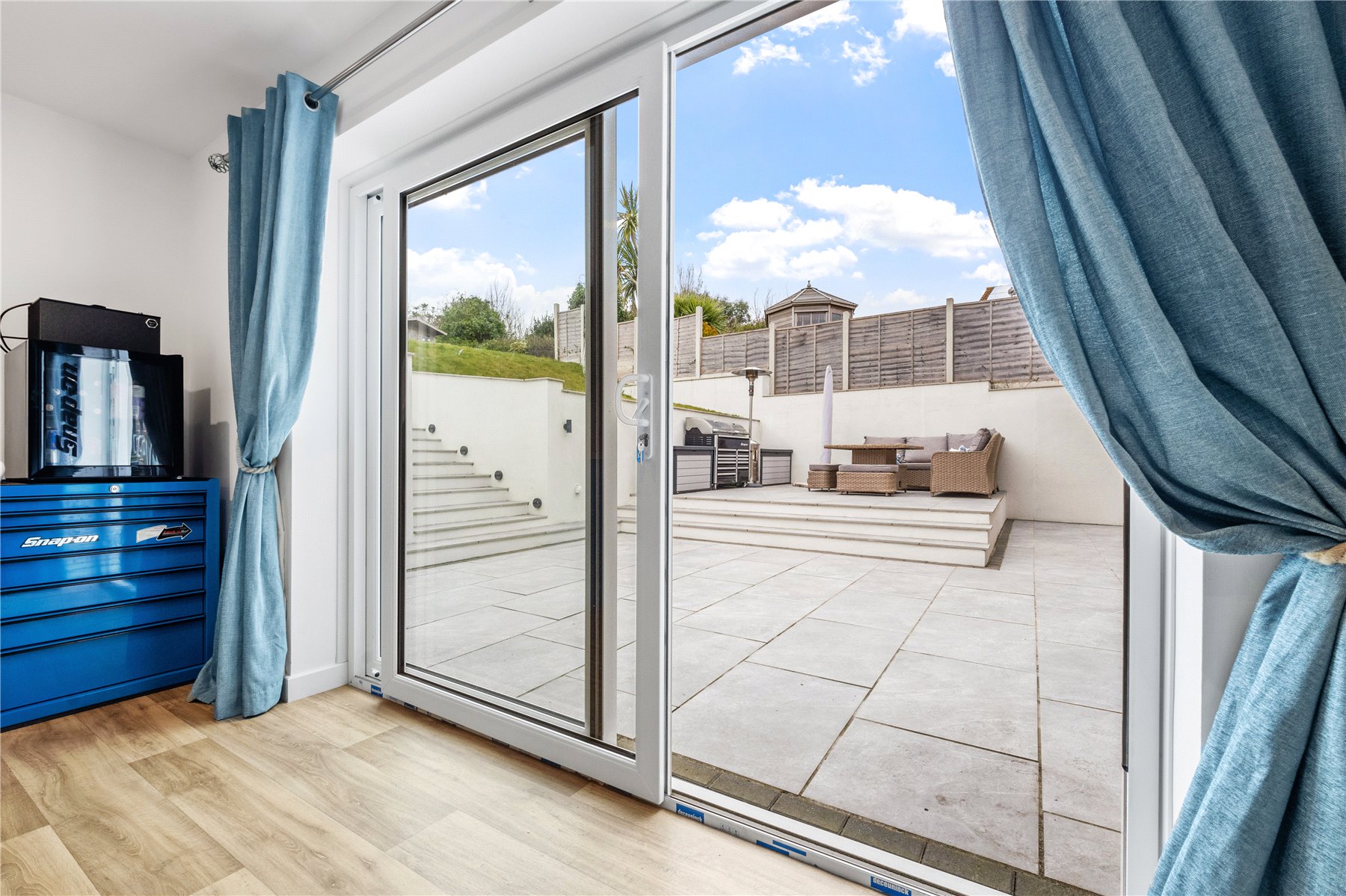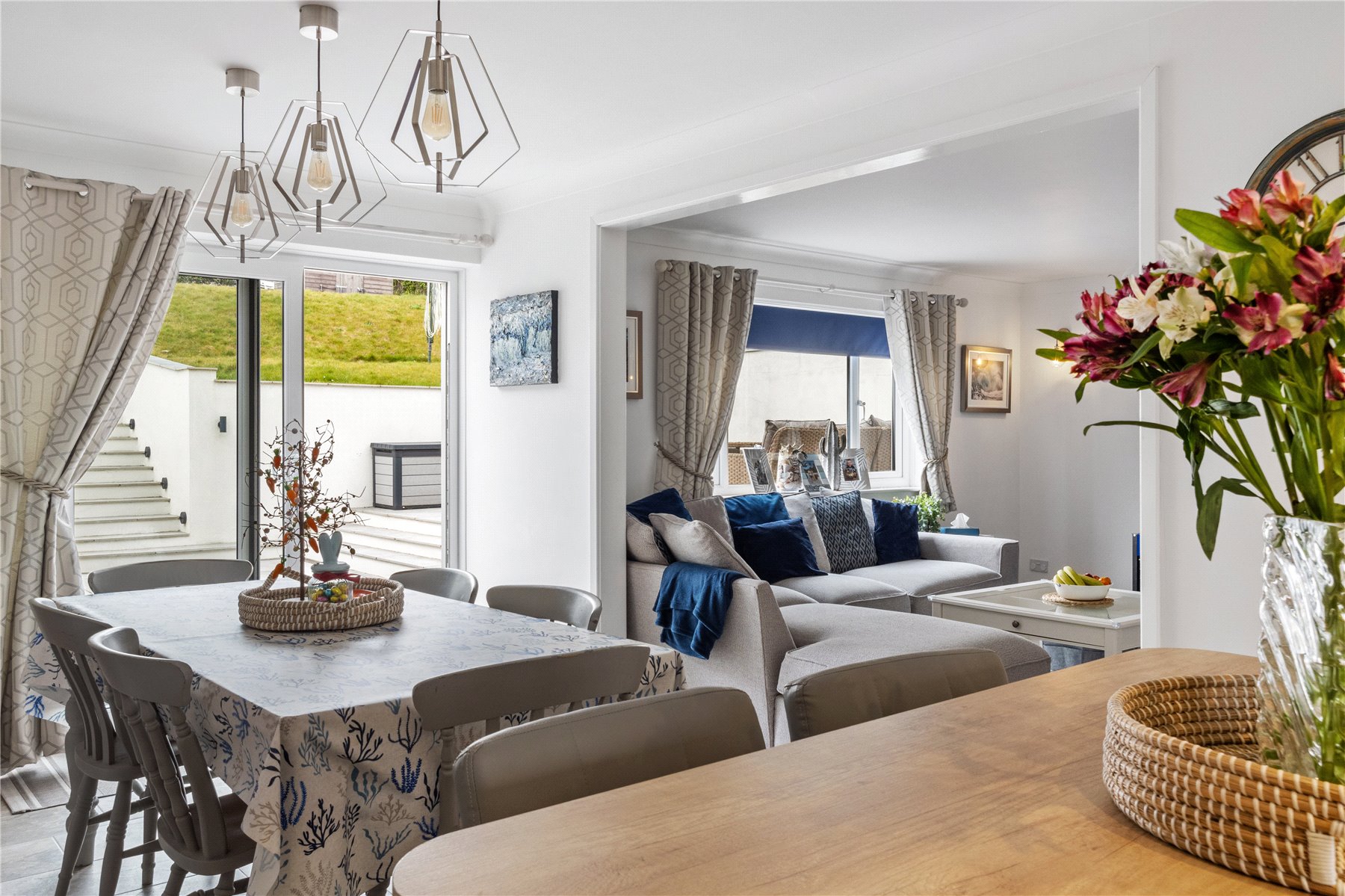 The exterior of The Beach House has much to offer. A generous DRIVEWAY provides parking for several vehicles, complemented by a single GARAGE for additional storage or parking needs. The rear GARDEN is a true haven, with a patio area well designed for outdoor dining and entertaining. Steps lead up to a lush lawn, creating a delightful space for children to play or a blank canvas for your own landscaping plans. Whether you envision a colourful flower garden, a vegetable patch, or a tranquil seating area, this space provides the perfect opportunity to create your own outdoor oasis. A garden shed is tucked away, offering practical storage for tools and outdoor equipment. An outdoor shower adds a touch of luxury, perfect for rinsing off after a day at the beach or in the garden.