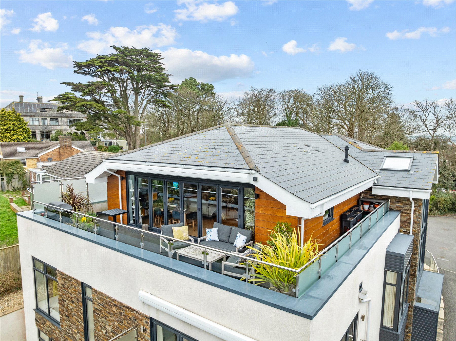 A particular highlight of the property is the EXPANSIVE, PRIVATE, DECKED ROOF TERRACE with electric awning, designed to create a superb outdoor living space. Enclosed by contemporary glass balustrading, the terrace enjoys a sunny aspect and provides the perfect setting for entertaining, al fresco dining or simply relaxing whilst enjoying the views towards the sea and Portland. Generous proportions allow ample space for outdoor furniture, while large planters soften the space with greenery, creating a peaceful and inviting environment where the sound of birdsong and surrounding trees enhance the sense of tranquillity.