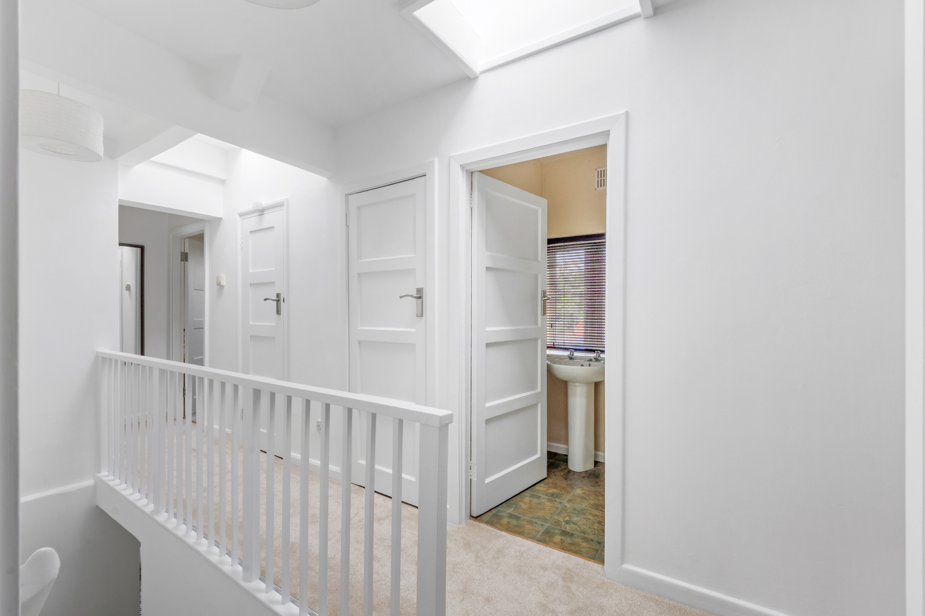Upstairs, the LANDING is filled with natural light, thanks to two skylights.
