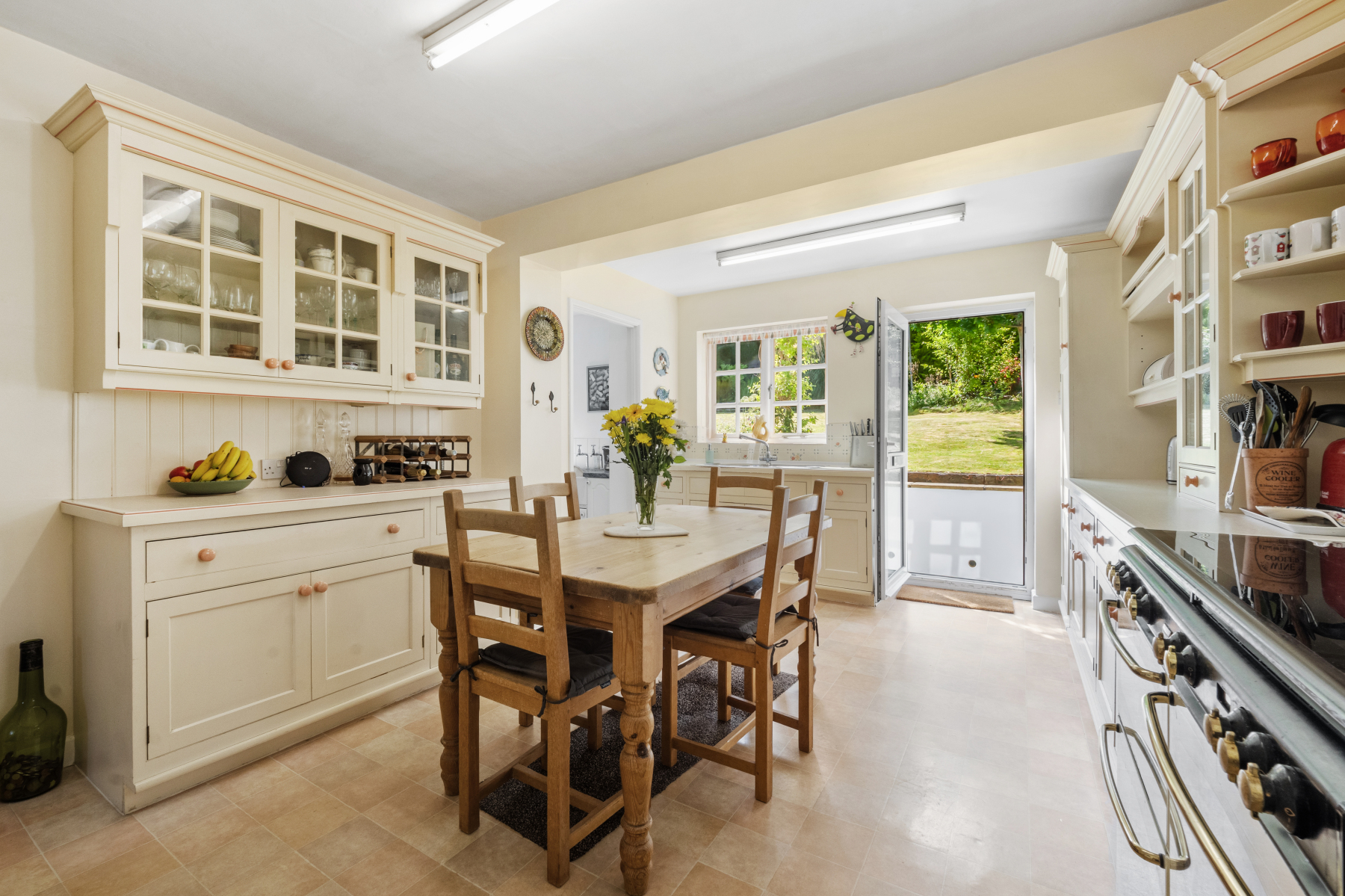 The KITCHEN/BREAKFAST ROOM has been designed with family needs in mind. Light streams in from both side and rear-facing windows, and there is ample room for a range cooker and fridge/freezer. Tiled splashbacks and tile-effect flooring offer both style and practicality, while a rear door allows easy access to the garden ideal for supervising young ones at play or carrying food outside for summer dining. Adjoining the kitchen/ breakfast room, the UTILITY ROOM is equipped with space and plumbing for a washing machine and tumble dryer, along with a deep Belfast sink and rear-facing window. Its a hard-working space that keeps laundry and mess neatly out of the main living areas.