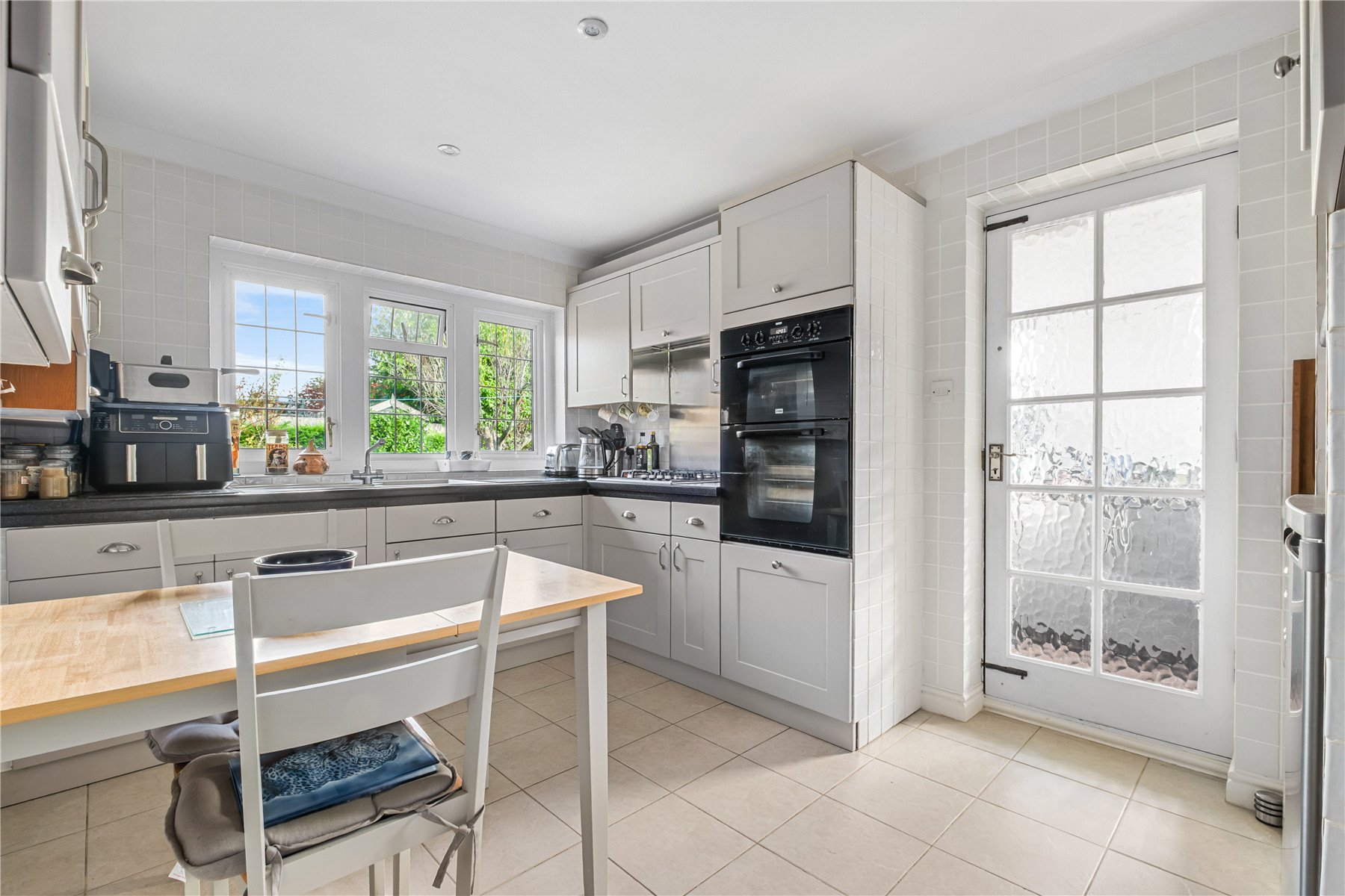 The KITCHEN BREAKFAST ROOM is light and practical, with a lovely view over the back garden. It's well planned, with plenty of storage and workspace, along with integrated appliances including an oven, grill, gas hob, and space for a fridge. There's also space for a small dining table, a great place to enjoy breakfast and informal meals.