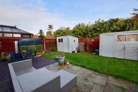 OUTSIDE The front of the property has a driveway providing off street parking, as well as an additional off-street parking space. The rear garden is laid to lawn with two paved patio areas, a slate chipping seating area, raised beds and an outside tap.
