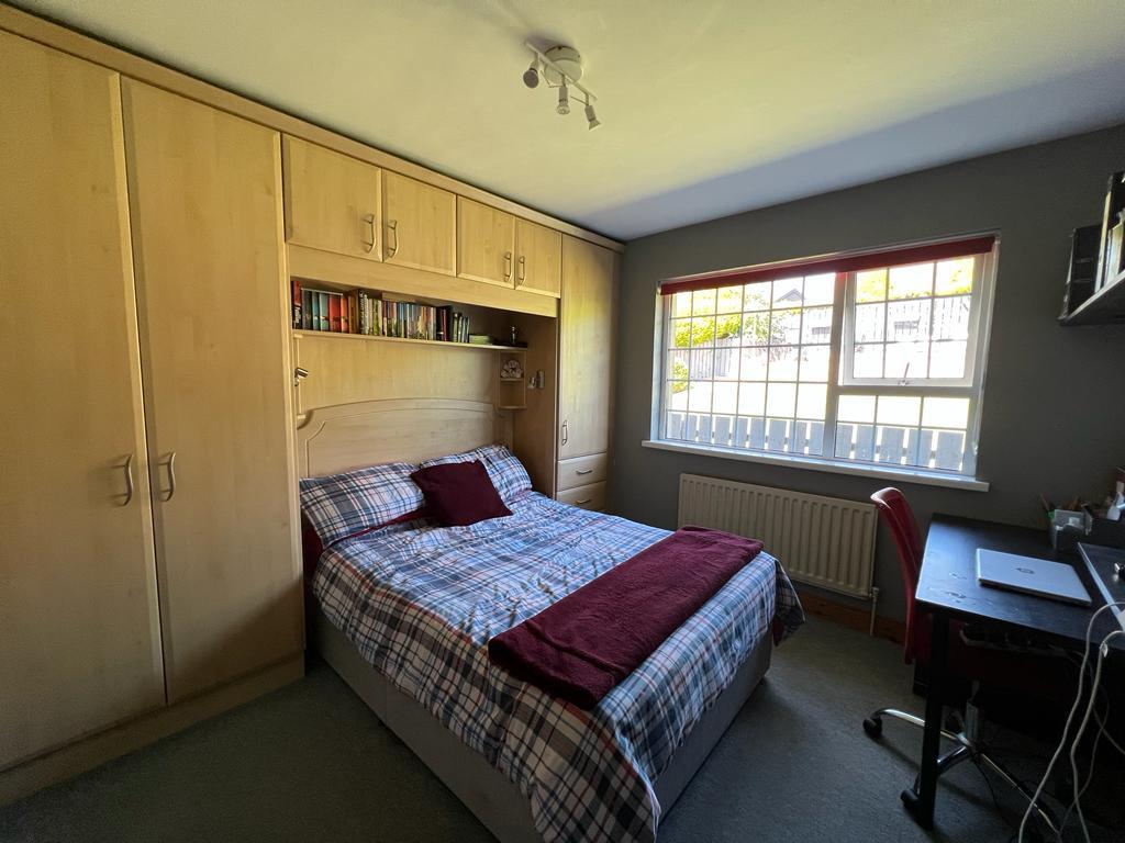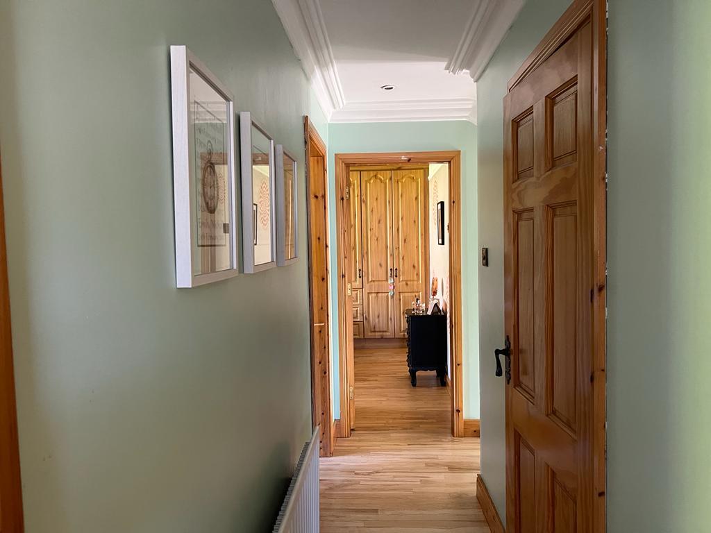 Having hotpress, walk in storage cupboard, recessed lighting, ceiling cornicing, semi-solid wooden floor.
