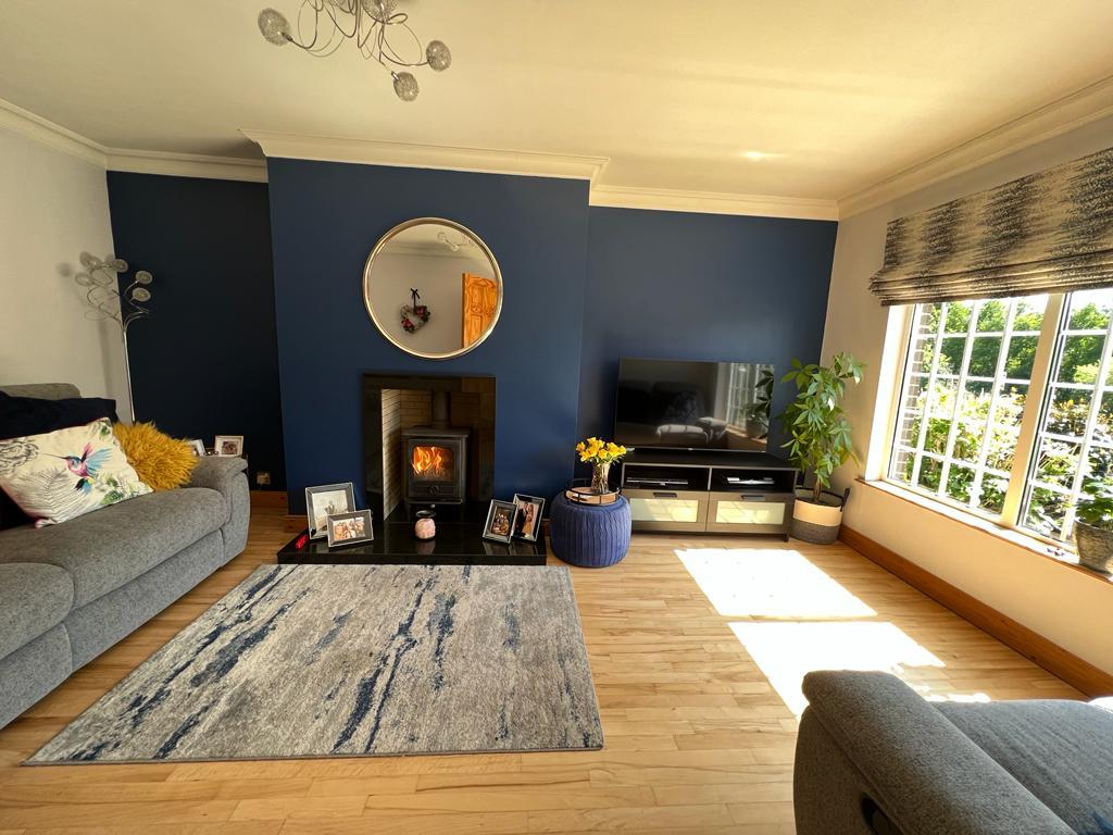 5.08m x 3.48m (16'8" x 11'5") - Having multi fuel stove set on granite hearth, ceiling cornicing.