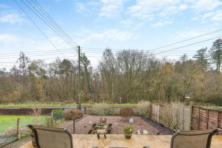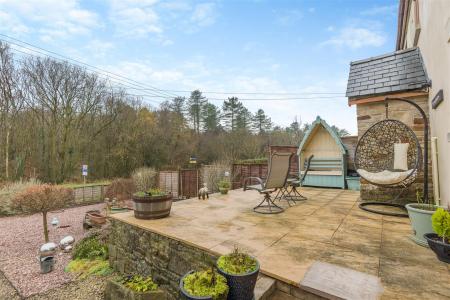 Outside - To the front of the property sits a large garden laid to low maintenance gravel with shrubs, bushes, and small trees. This area is enclosed by fencing, offering lovely views towards the woodland. A large raised patio area, benefiting from an outside tap, leads to the front door. A gravel pathway continues along the right-hand side of the property to the rear garden.