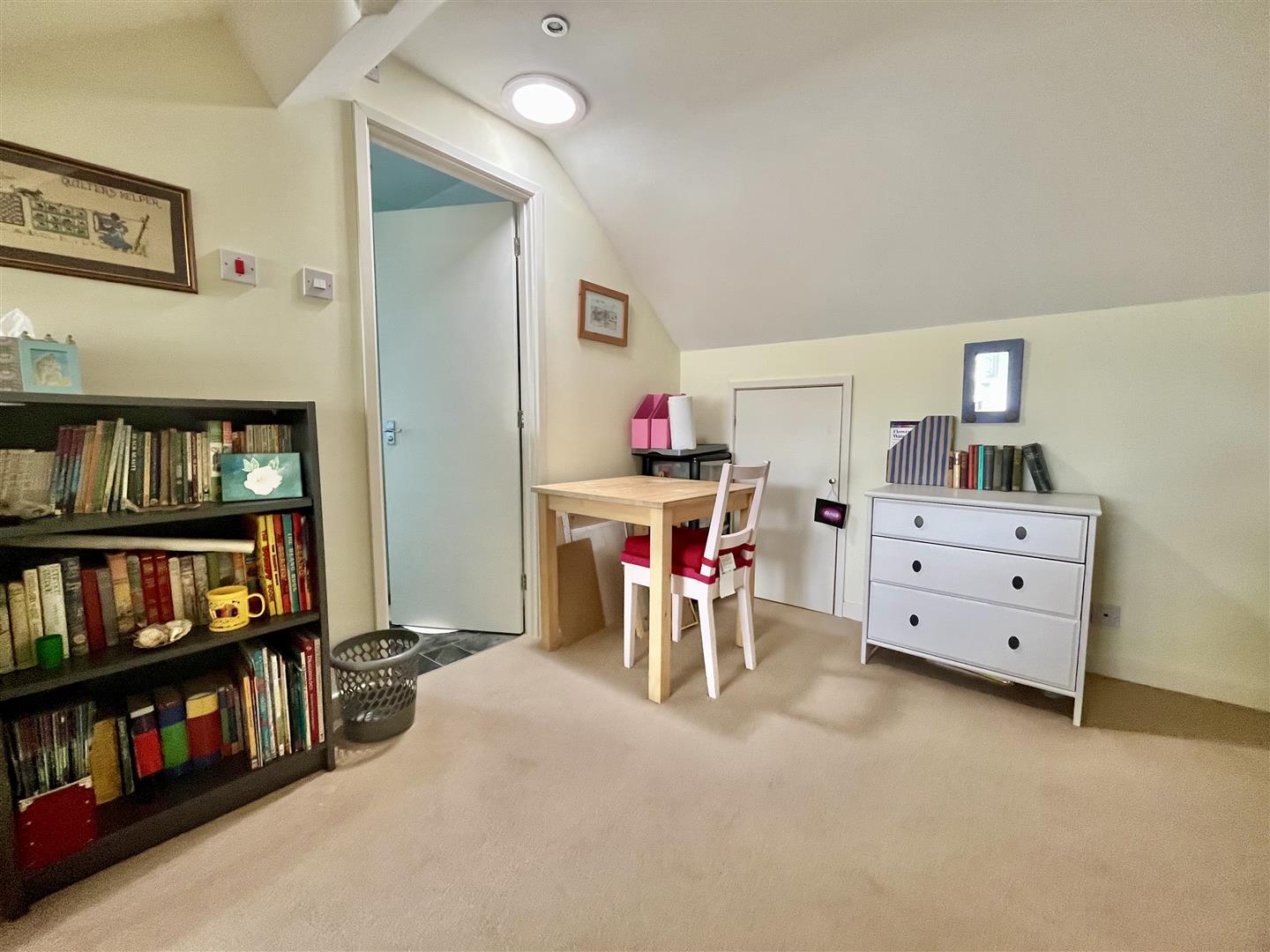 Bedroom Three - 7.70m x 2.69m (25'03 x 8'10) - Access to spacious eaves storage, radiator, rear aspect window with views towards Ruardean Hill, door into;