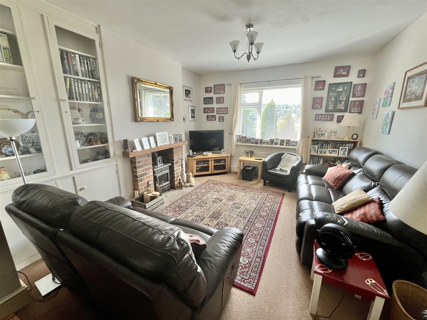 Lounge - 4.09m x 3.45m (13'05 x 11'04) - Feature fireplace with brick surround and inset multi fuel burning stove, fitted display cabinet, tv and phone points, radiator, rear aspect window overlooking the garden with stunning views towards Ruardean Hill.