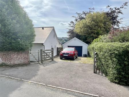 Garage & Parking - 5.79m x 3.35m (19'00 x 11'00) - A five-bar gate opens onto a driveway with space for three vehicles, leading to a detached garage with power and lighting, located to the right of the property.