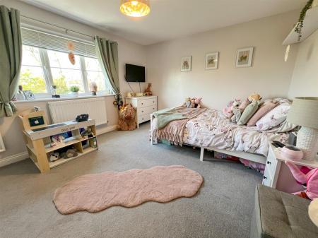Bedroom One - 4.17m x 4.14m max (13'08 x 13'07 max) - Inset ceiling spots, range of built in wardrobes with hanging rail and shelving space, power points, usb points, single radiator, rear aspect upvc double glazed doors giving access onto a Juliette style balcony, rear aspect upvc double glazed window overlooking the rear garden with views towards forest and woodland, wooden panel door giving access into: